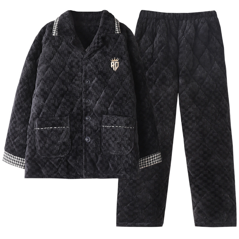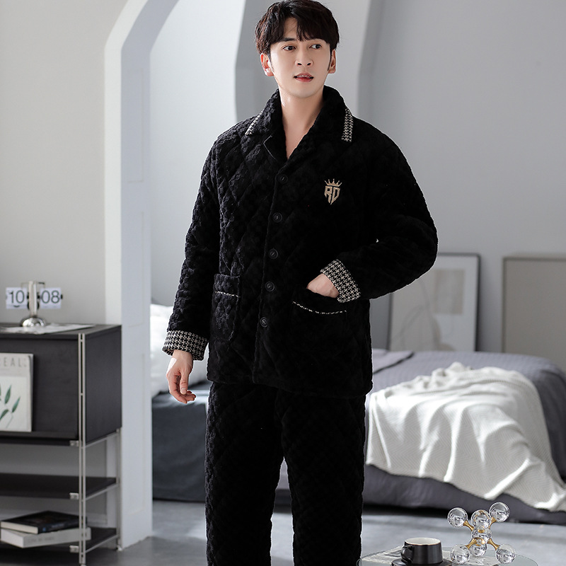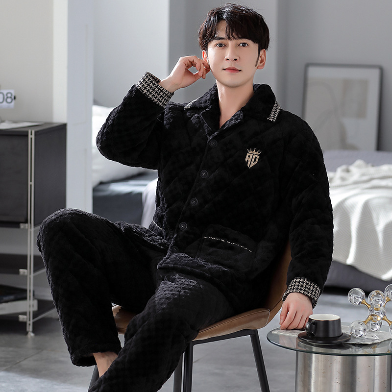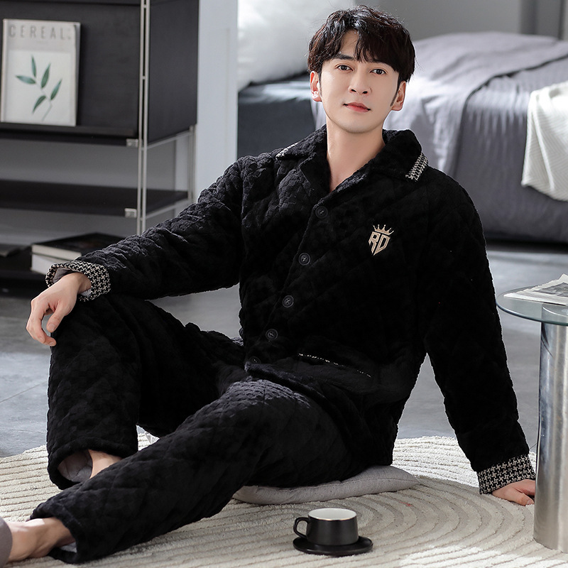 Осенний и зимний трехслойный хлопковый пижама мужской зимний бархат толстый коралловый бархат мужская домашняя одежда зимний хлопковый костюм