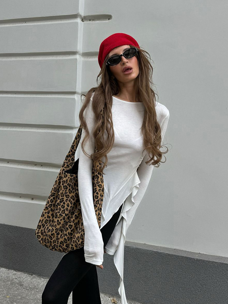 2025 Русская весна/лето нерегулярный сексуальный дизайн белый вязаный круглый вырез тонкая женская футболка