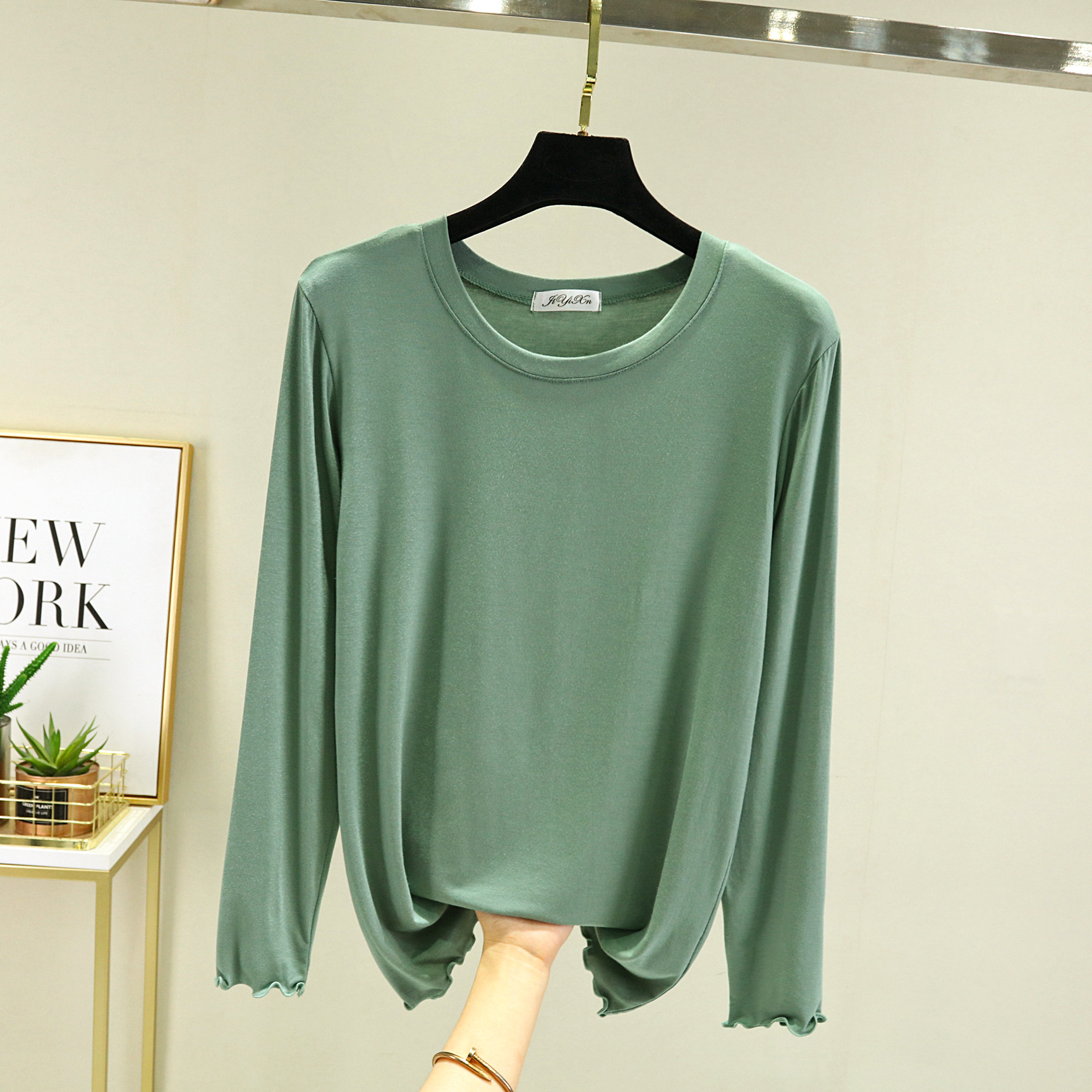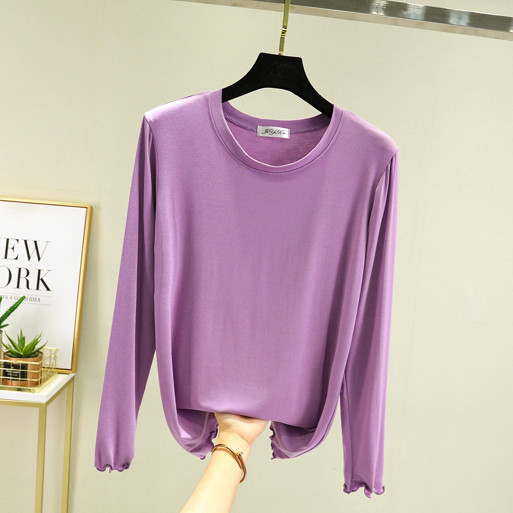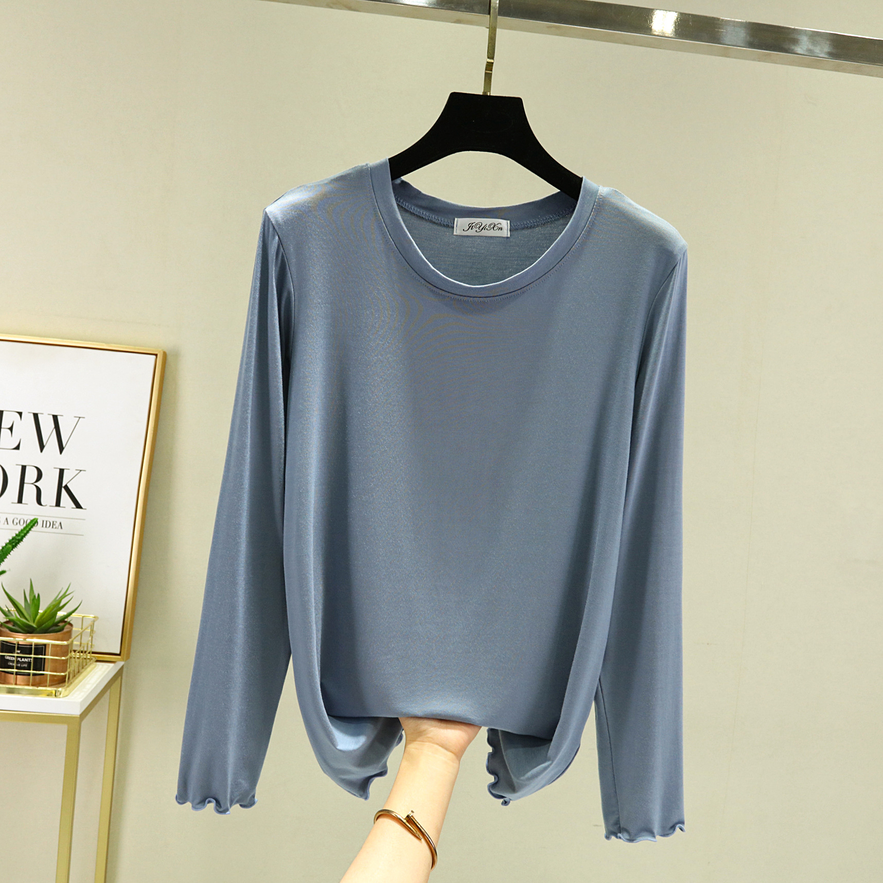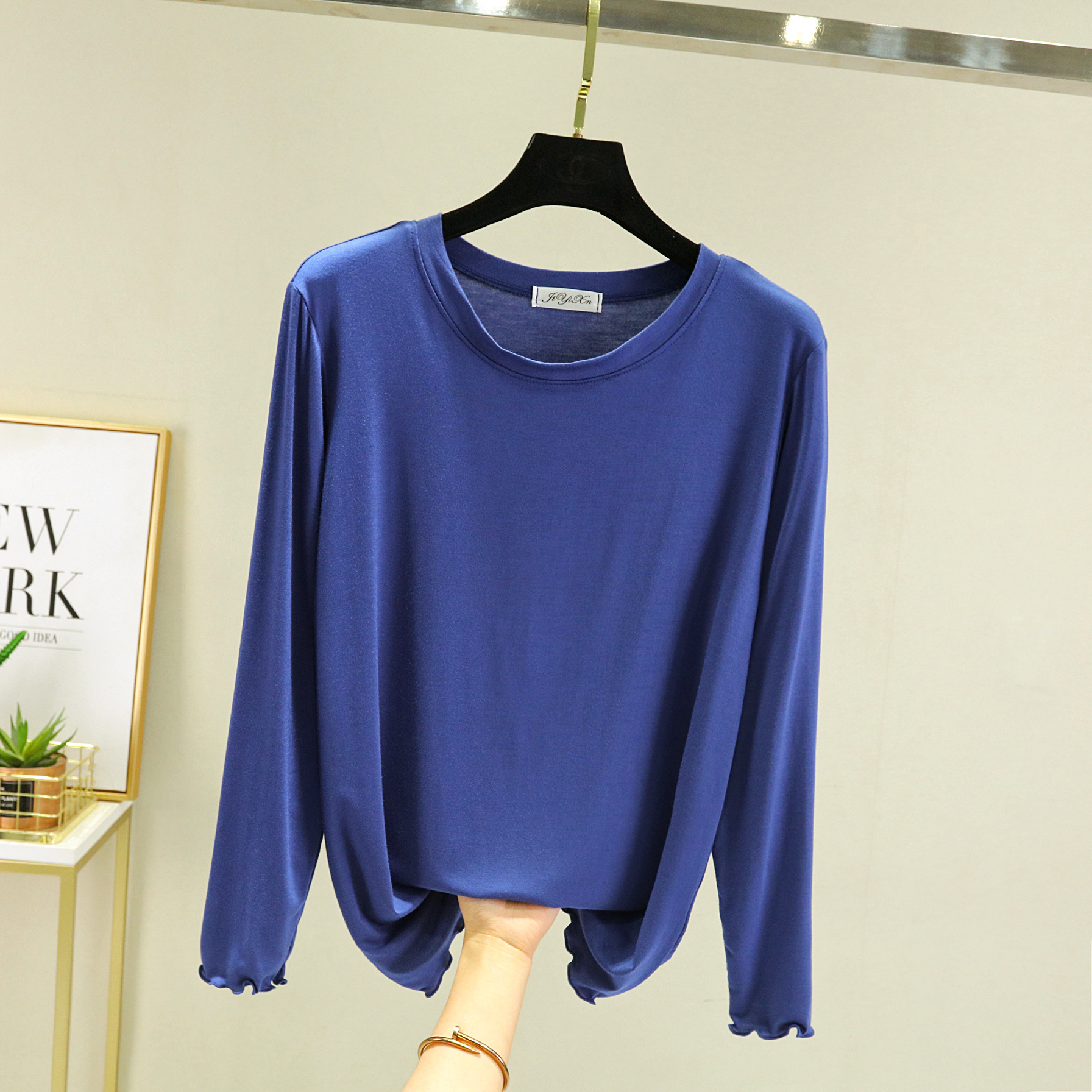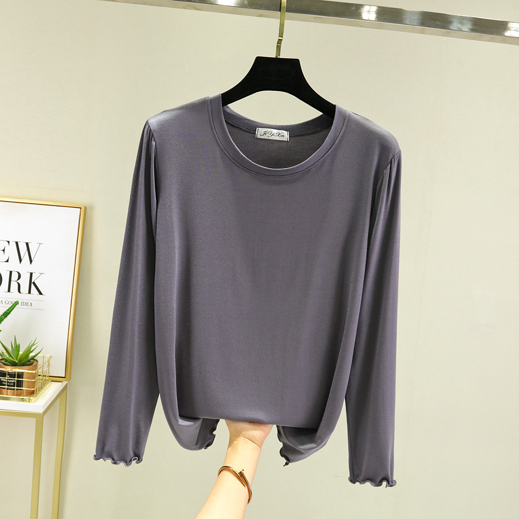 Главная страница > Модальная женская базовая футболка с облегающим кроем, новинка весны 2023, черная футболка с круглым вырезом и длинными рукавами.