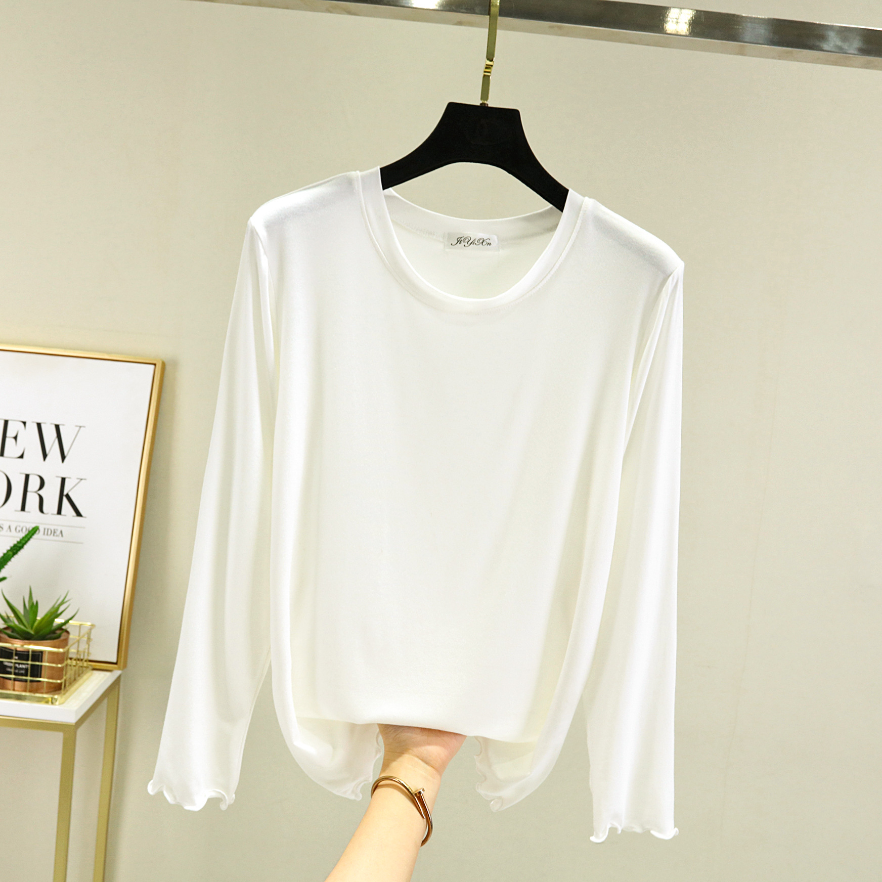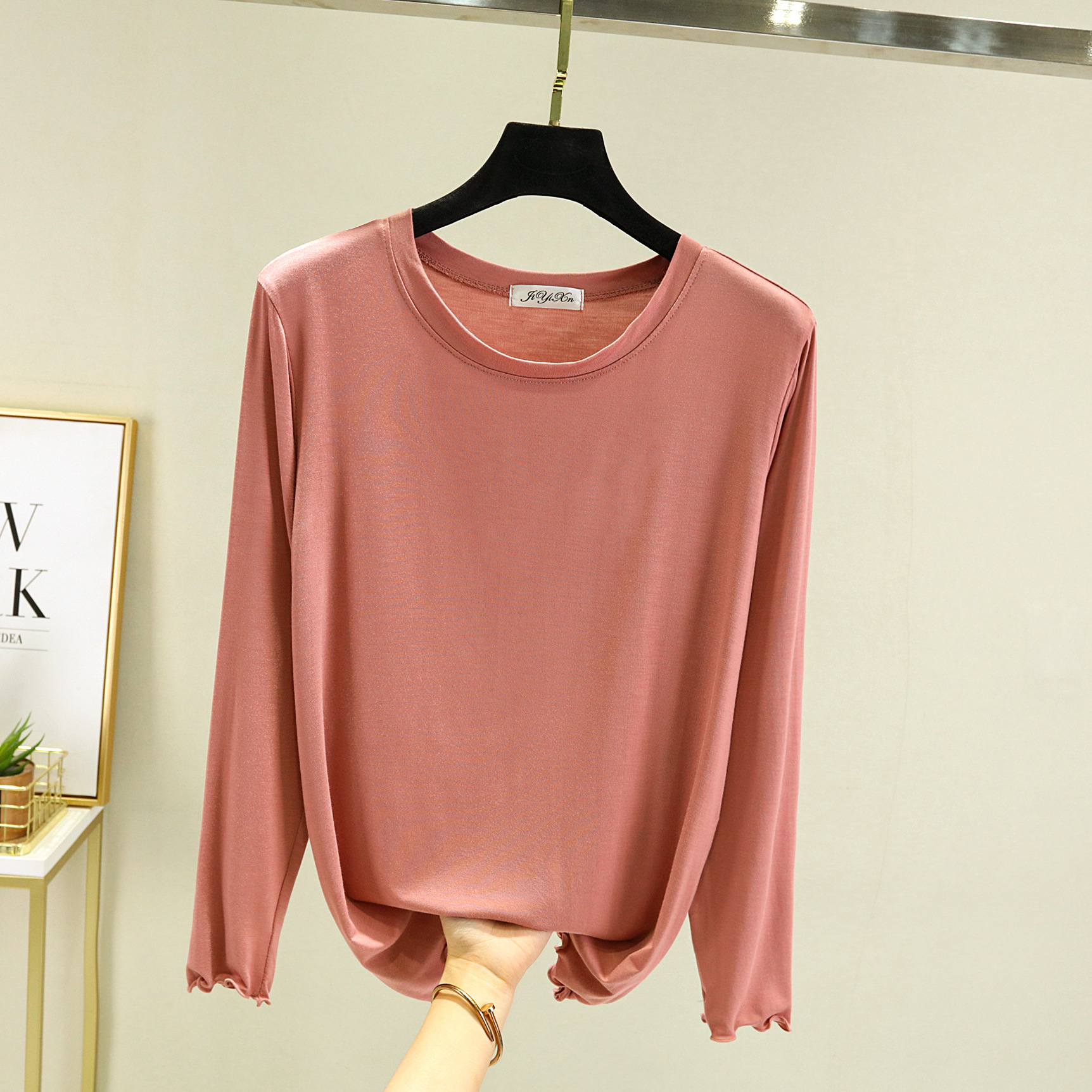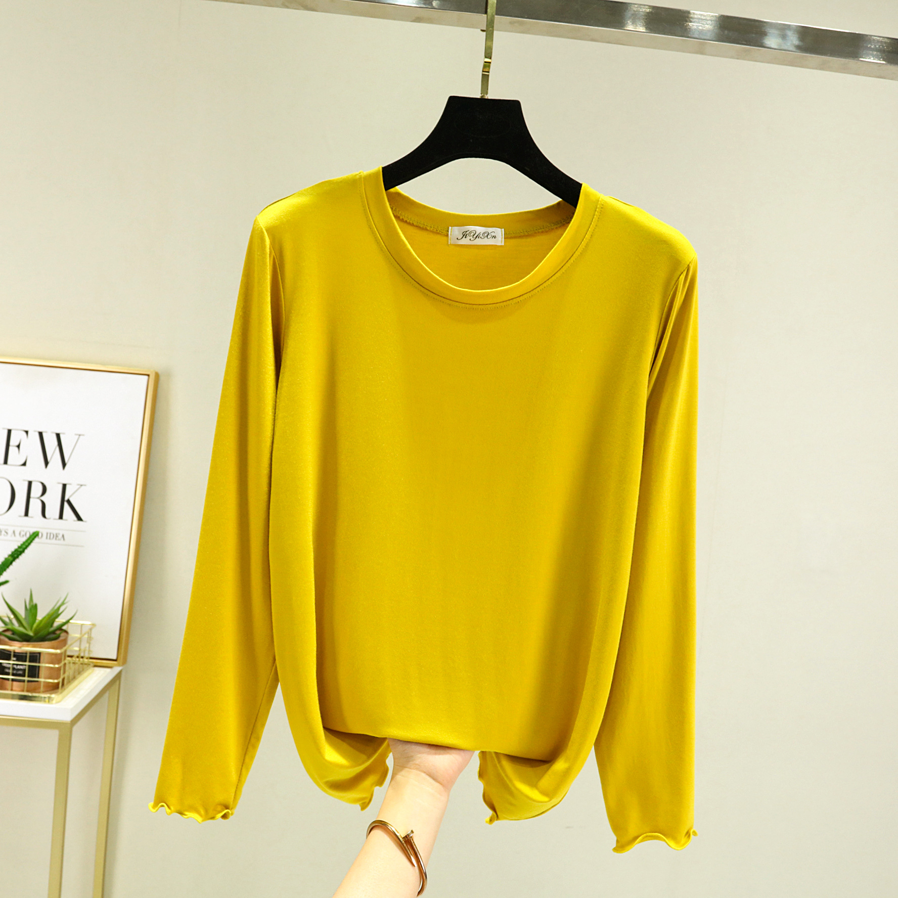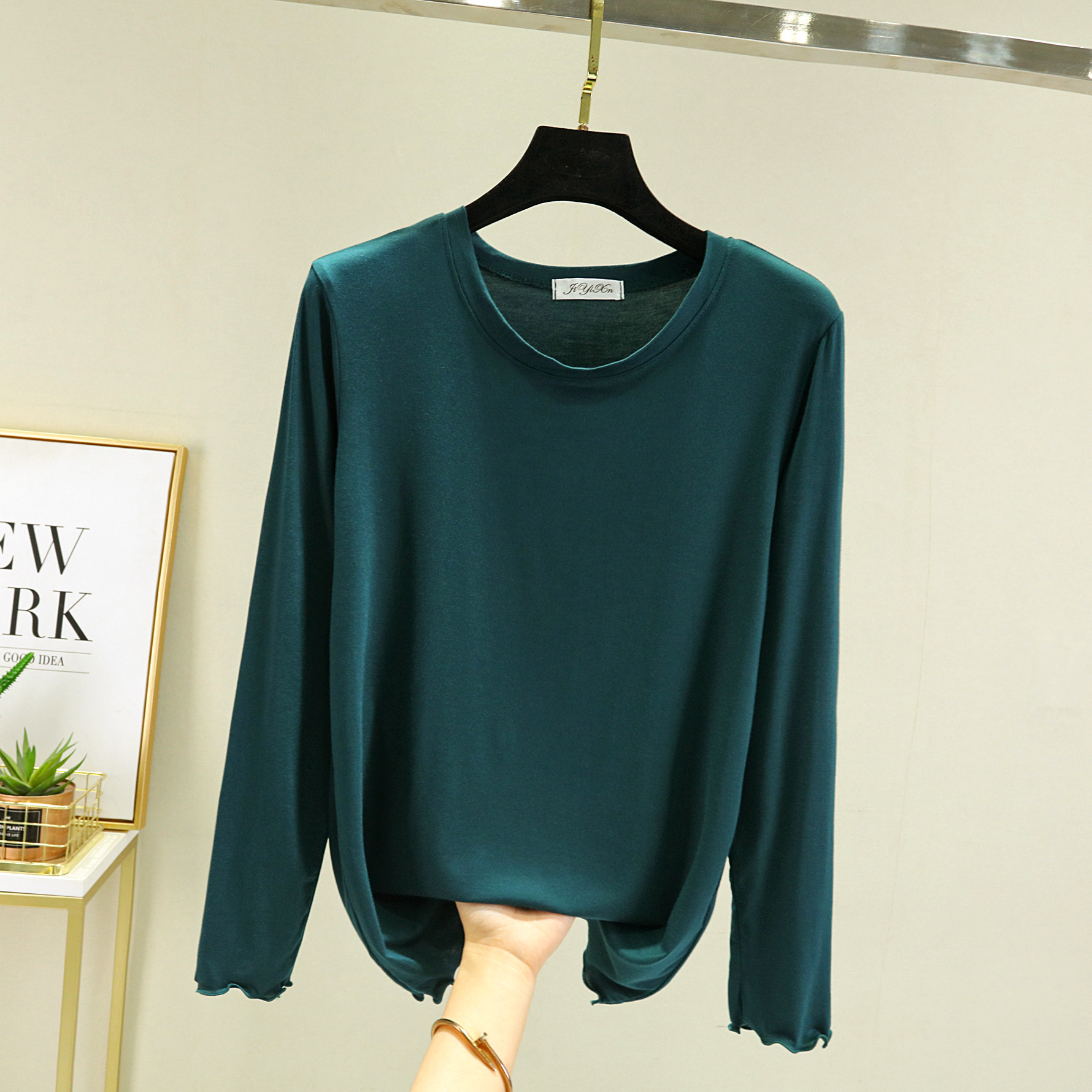 Главная страница > Модальная женская базовая футболка с облегающим кроем, новинка весны 2023, черная футболка с круглым вырезом и длинными рукавами.