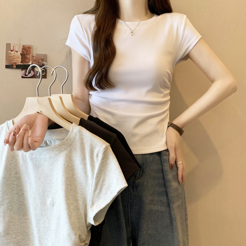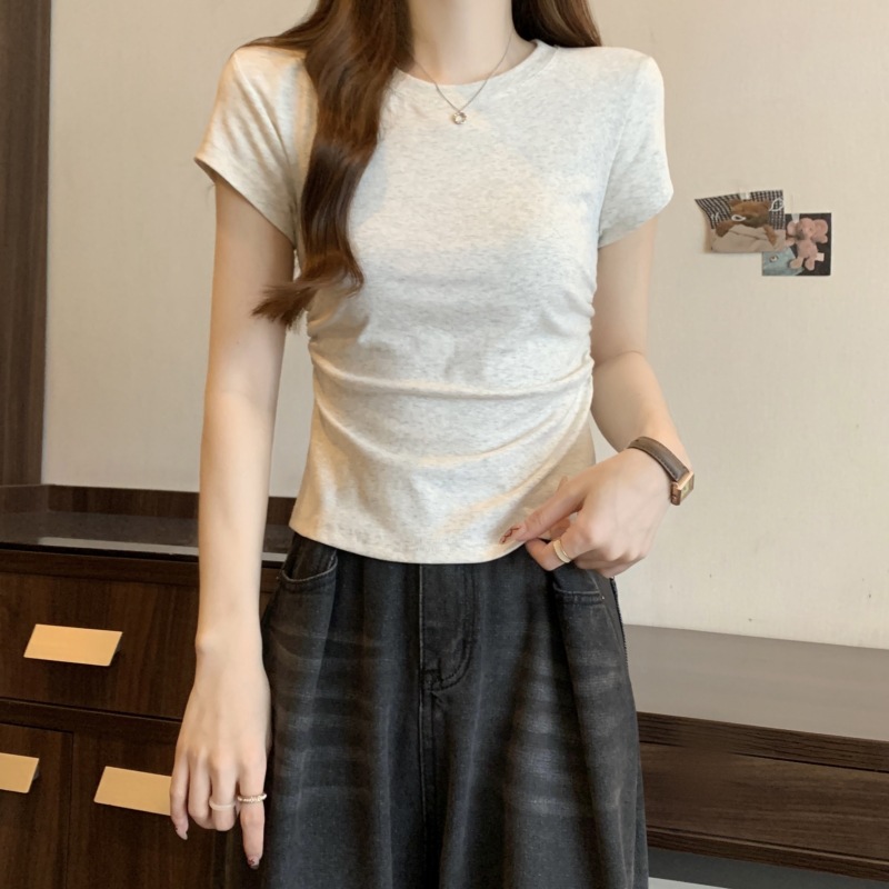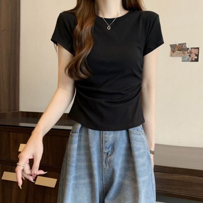 Летний шею с диким тонким плечом футболка с короткими рукавами
