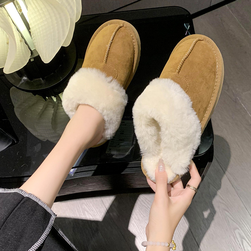 Главная страница > Тапочки Мао, женская верхняя одежда, цельные меховые зимние сапоги Baotou, новый зимний стиль, теплые хлопковые тапочки без шнуровки, 2023