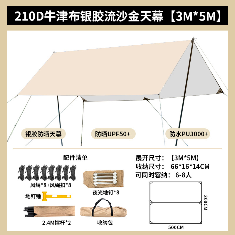 Зыбучие пески Золотой Модернизированный усиленный виниловый навес 3 м * 5 м [включая аксессуары]