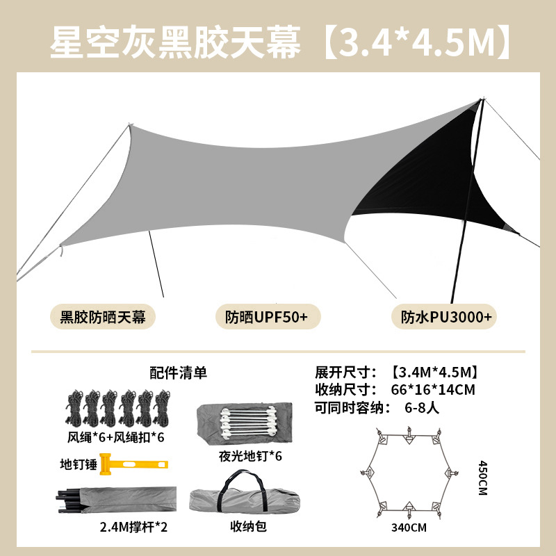 Звездное небо серый Модернизированный усиленный шестиугольный виниловый навес в форме бабочки 3,4 м * 4,5 м [включая аксессуары]