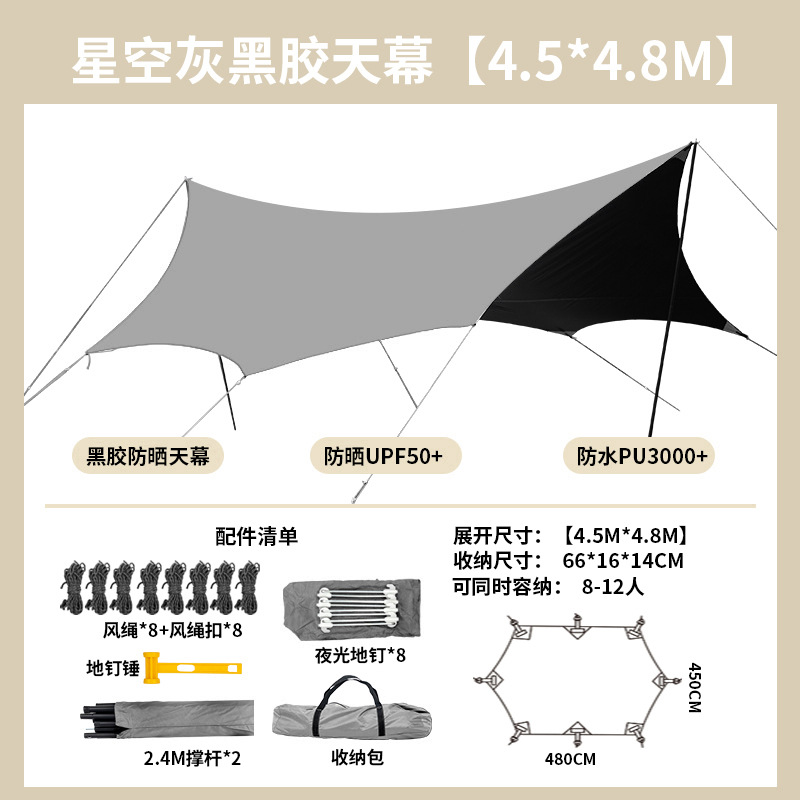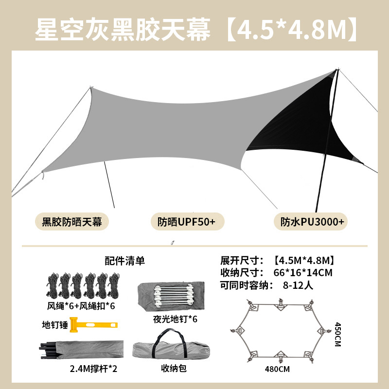 Звездное небо серый Модернизированный усиленный восьмиугольный виниловый навес в форме бабочки 4,5 м * 4,8 м [включая аксессуары]
