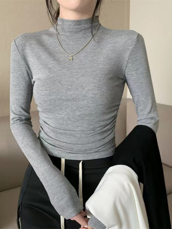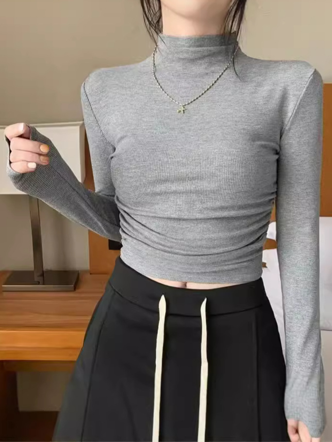 Горячая девушка с половинным вырезом узкая футболка женская осень-зима новая корейская версия 2024 года с длинными рукавами и короткими нижними рубашками