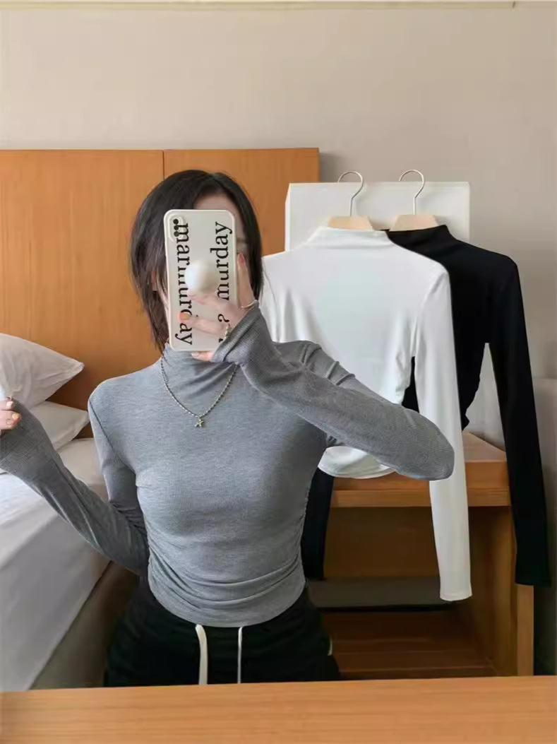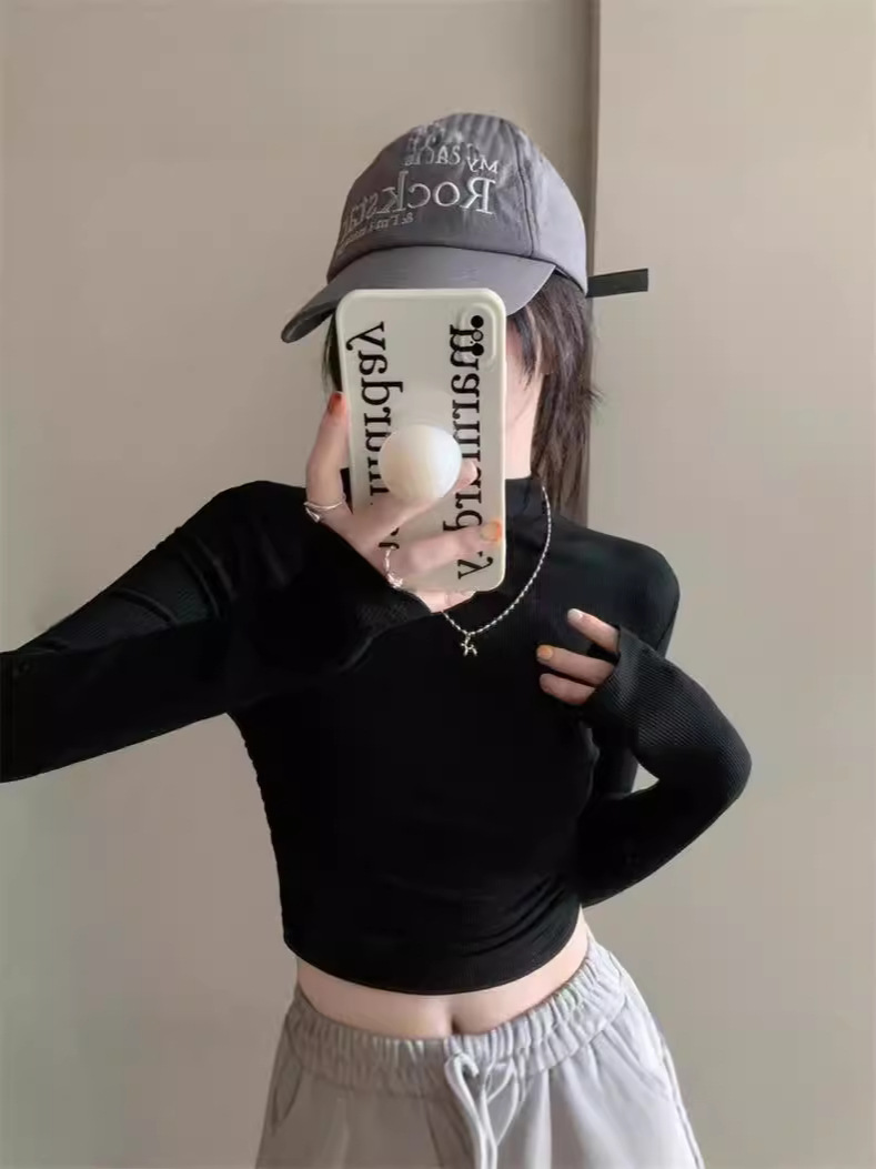 Главная страница > Горячая девушка с половинным вырезом узкая футболка женская осень-зима новая корейская версия 2024 года с длинными рукавами и короткими нижними рубашками