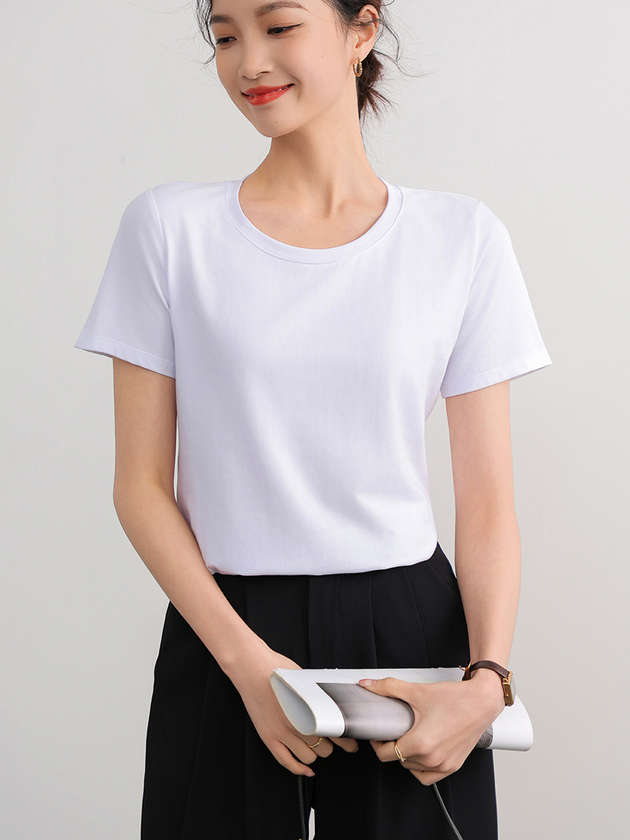 Главная страница > Хлопчатобумажная белая футболка с короткими рукавами летом 2025 новая свободная тонкая нижняя рубашка с сплошным топом