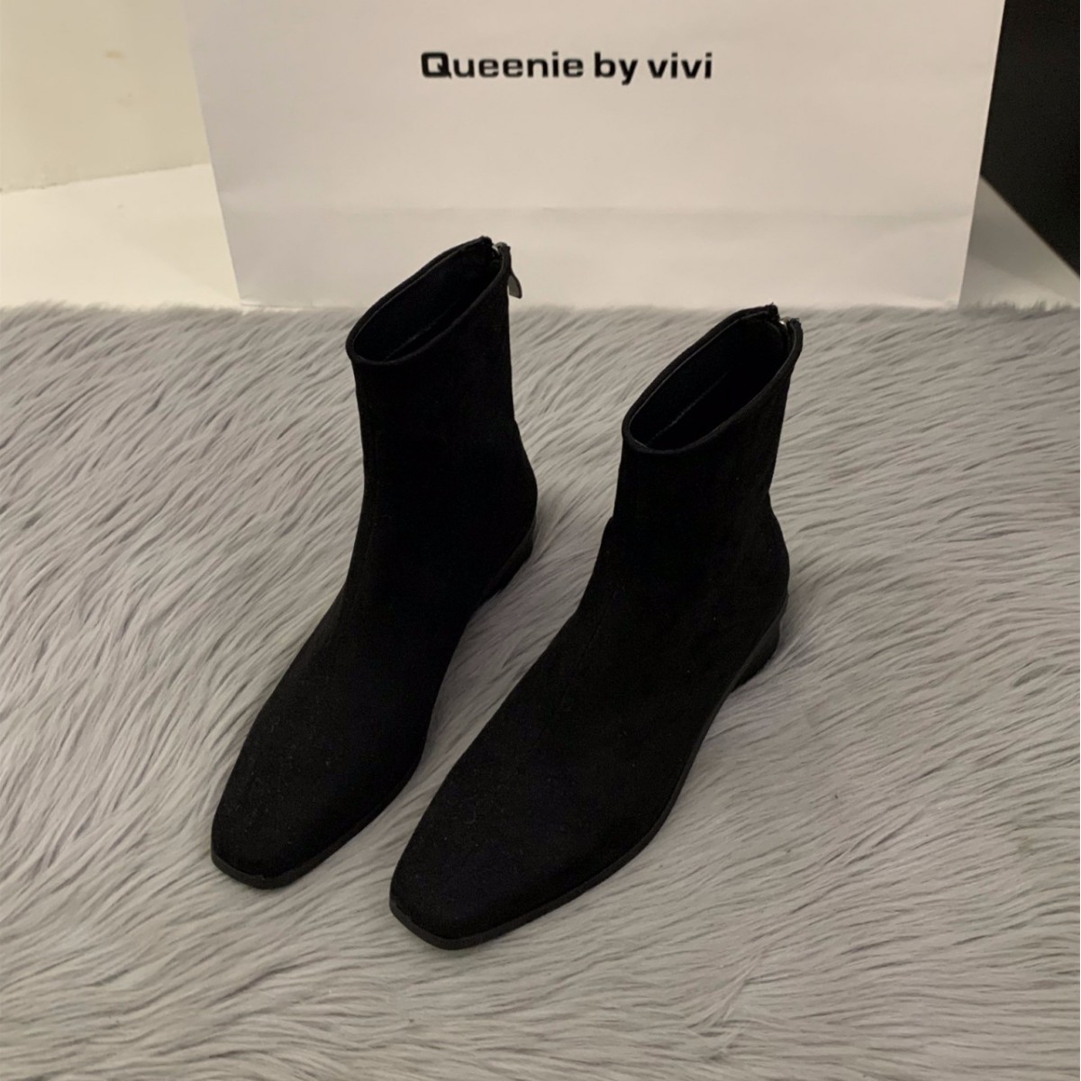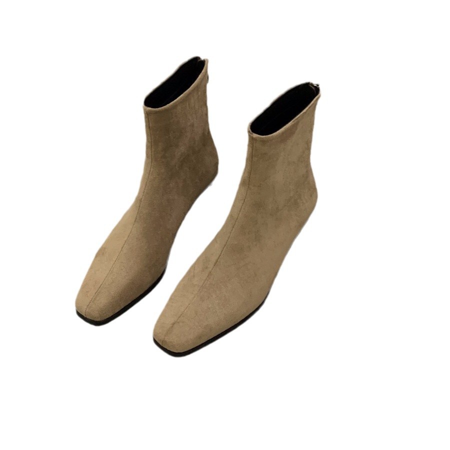 Главная страница > Туфли женские на толстом каблуке из замши, французские ботинки до щиколотки с квадратным носком, утепленные ботинки на флисе, коричневые, осень-зима 2024