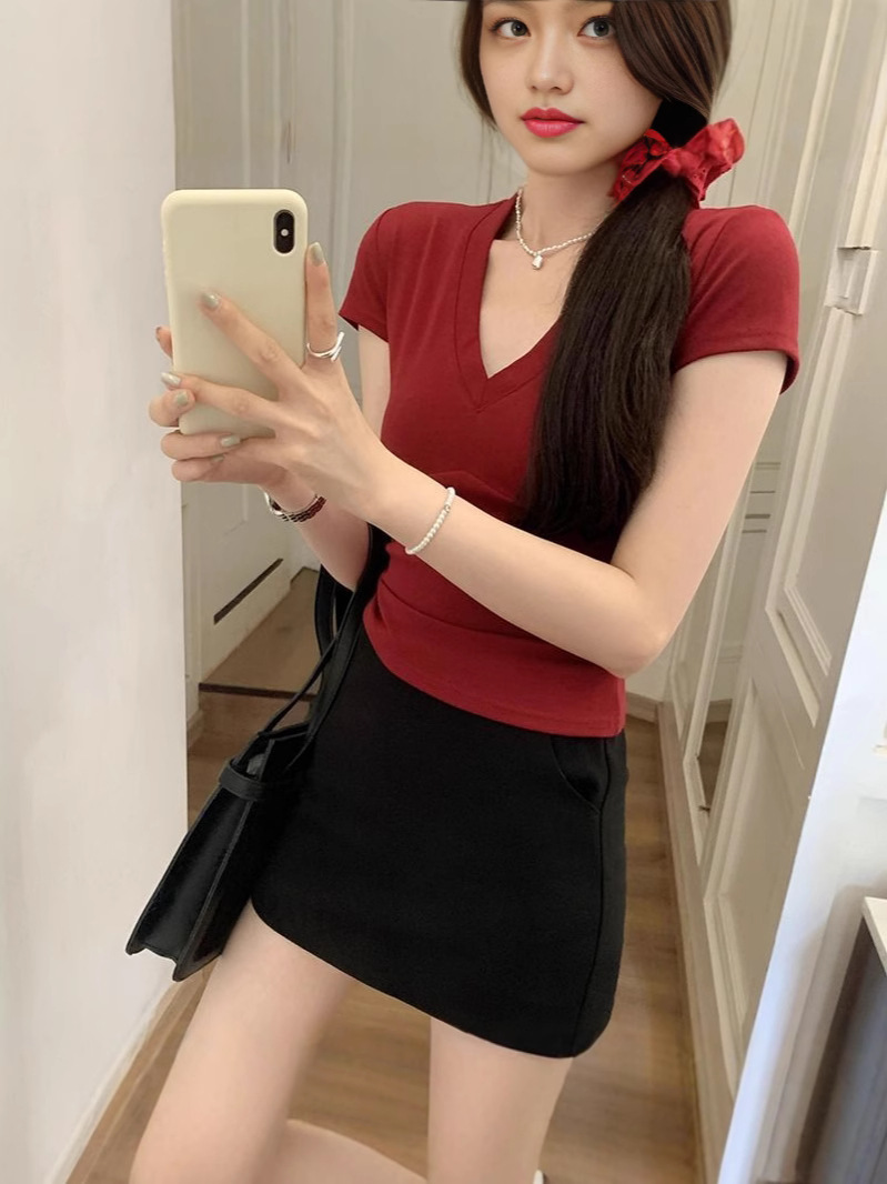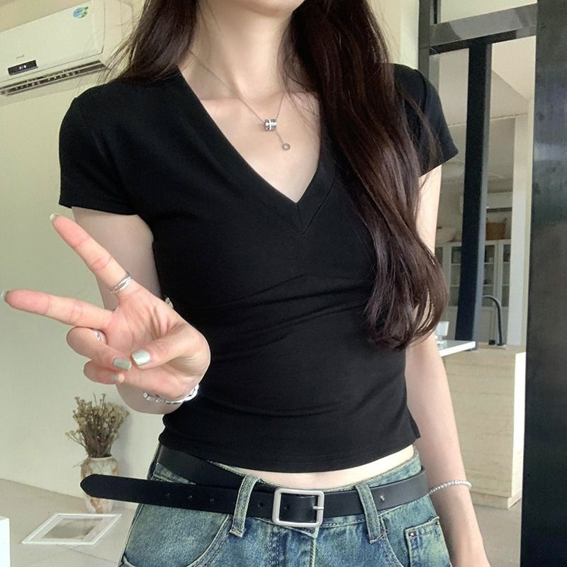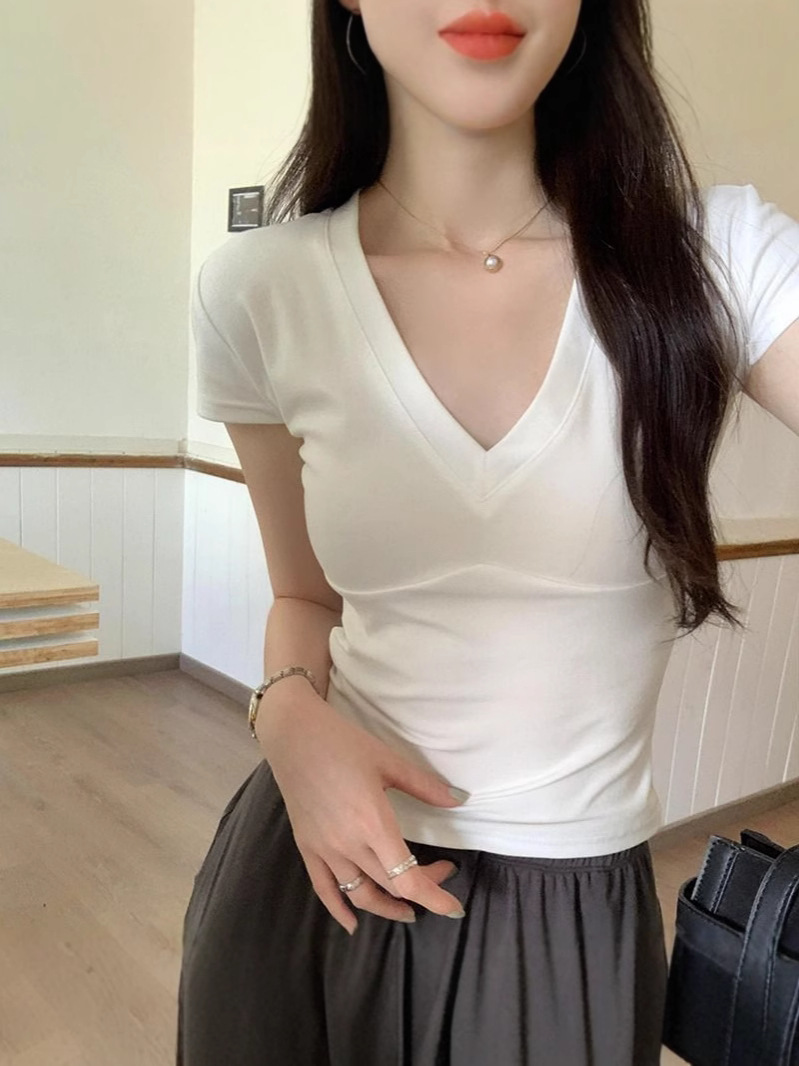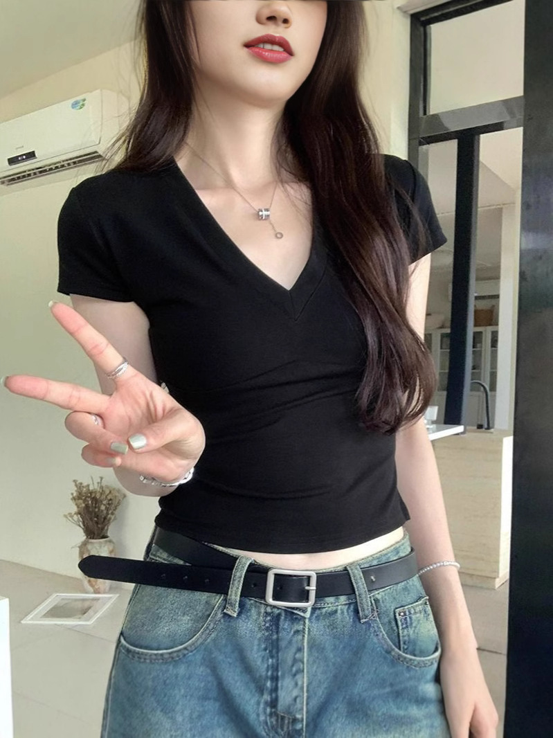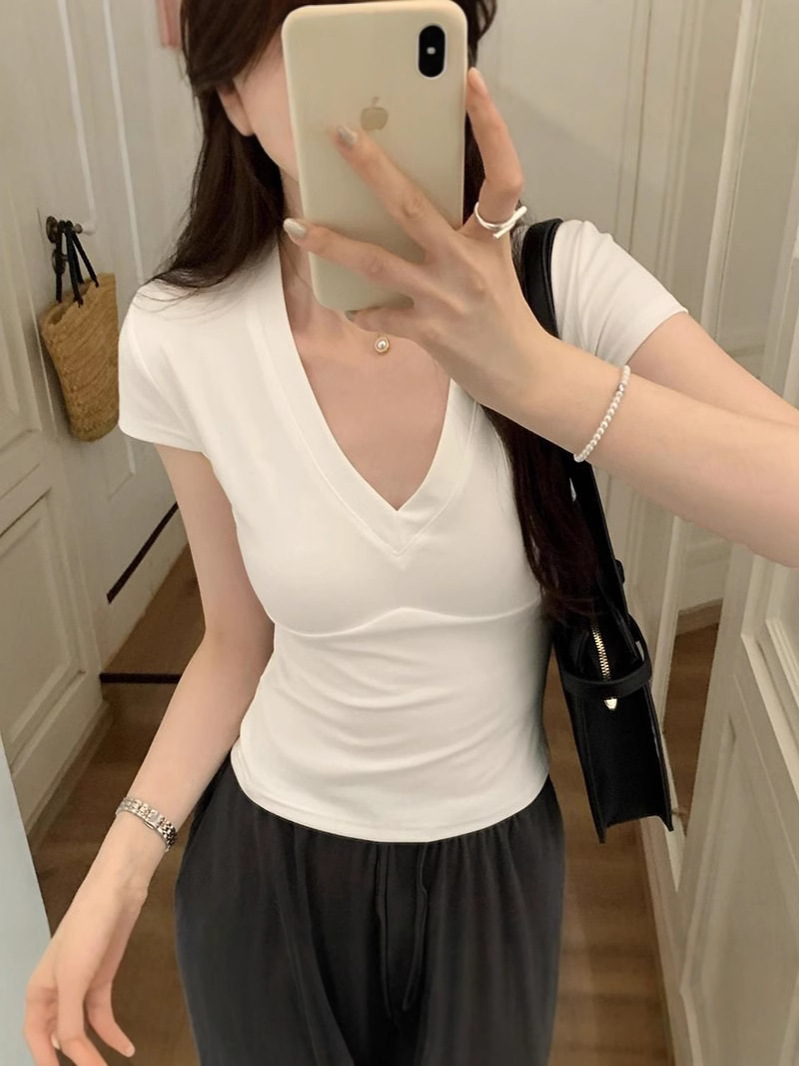 Маленькая сексуальная глубокая V короткая футболка с короткими рукавами