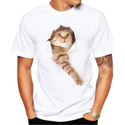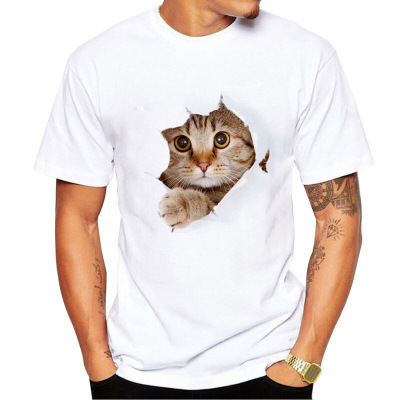 Главная страница > 2023 AliExpress WISH Европейская и американская мужская футболка с 3D принтом кота, трансграничная WISH