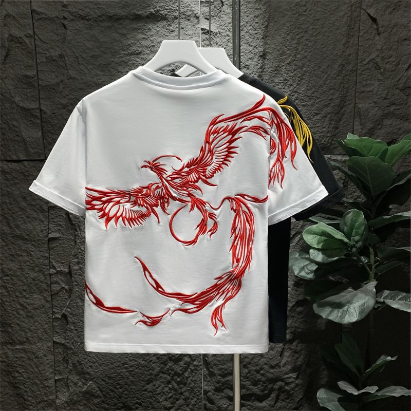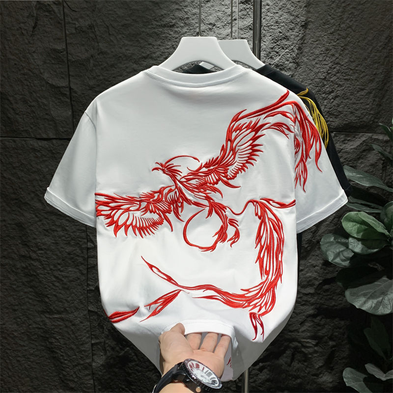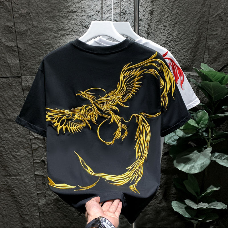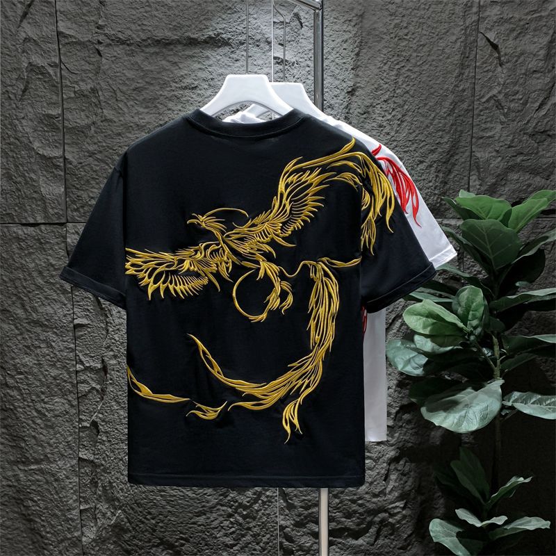 Главная страница > Модный бренд в китайском стиле, мужская футболка с круглым вырезом и вышивкой феникса, лето 2024, новые ленивые свободные мужские топы
