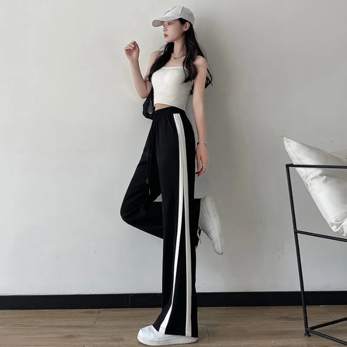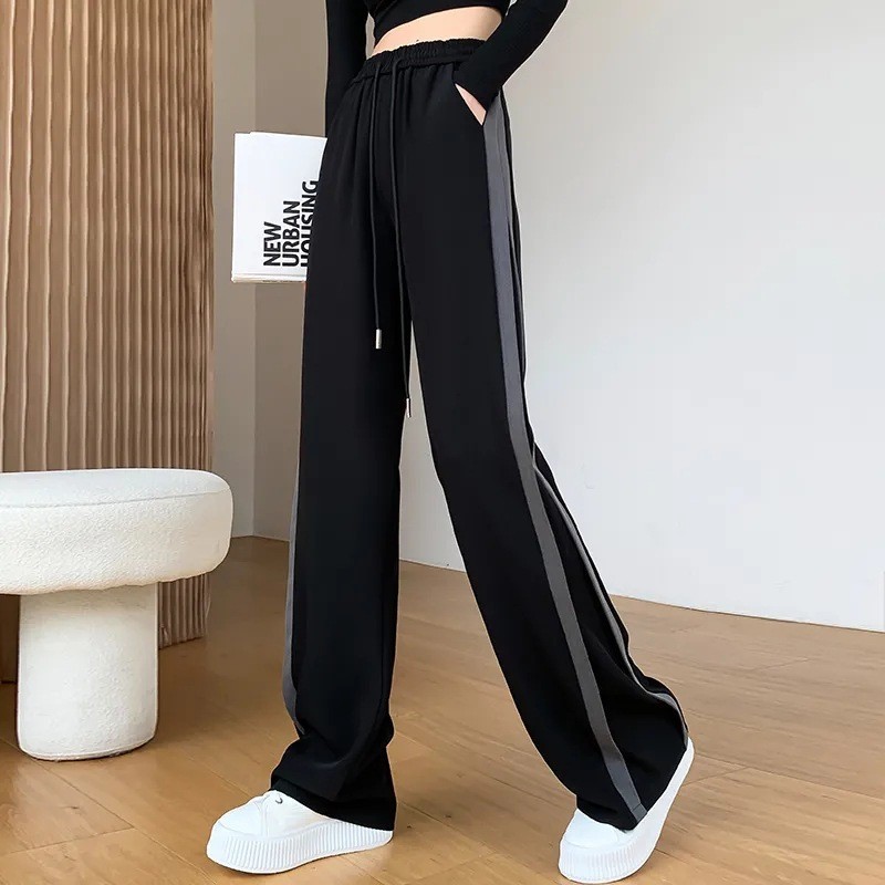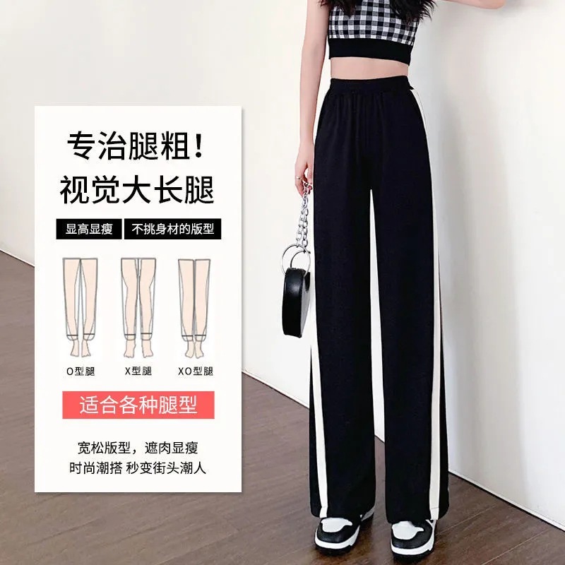 Главная страница > Женские широкие брюки на весну и лето в Корейском стиле Большие размеры, прямые брюки для похудения, Свободные повседневные маленькие студенческие спортивные брюки со шваброй, модные