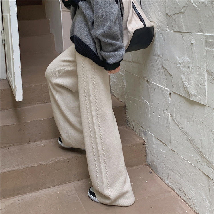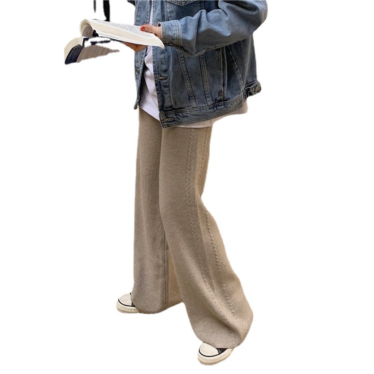 Главная страница > Повседневные трикотажные брюки с широкими штанинами для женщин, осень и зима, новые прямые брюки с высокой талией для похудения и драпировкой, верхняя одежда, брюки для швабры
