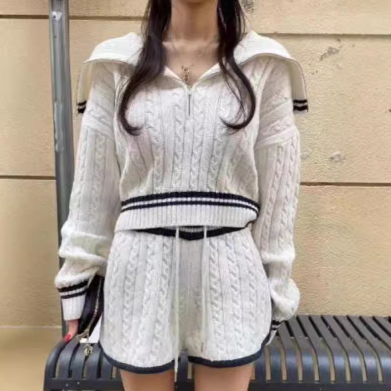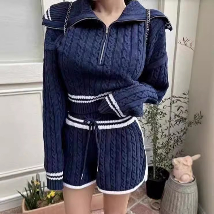 Главная страница > Модный женский комплект из толстого свитера на молнии и трикотажных шорт, новый стиль осень-зима 2025 года, двухслойный трикотажный комплект для женщин.