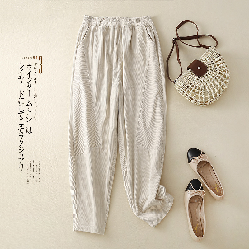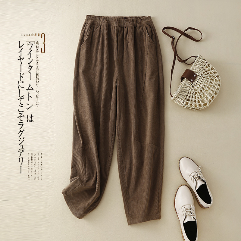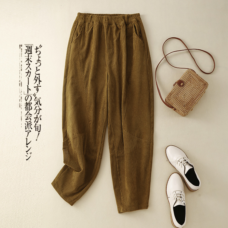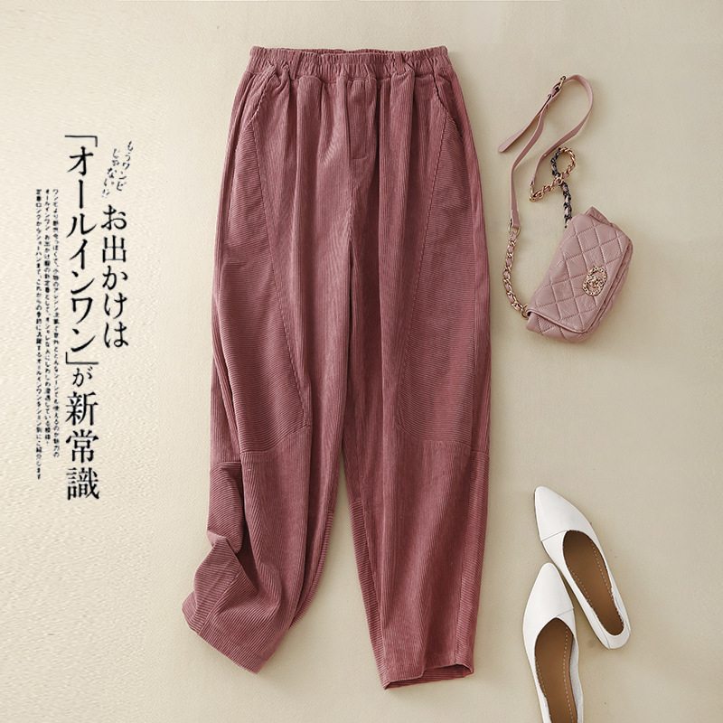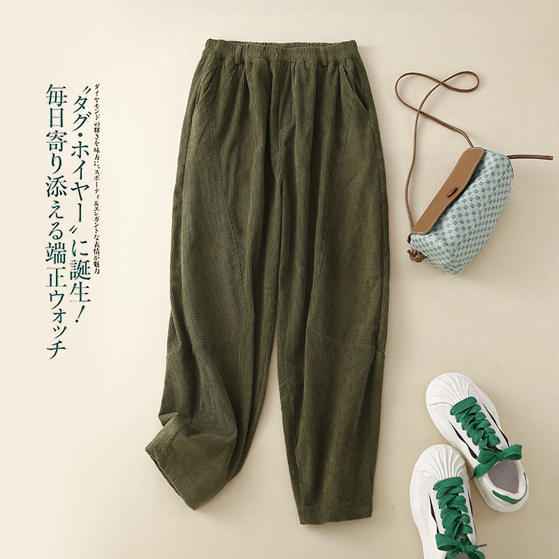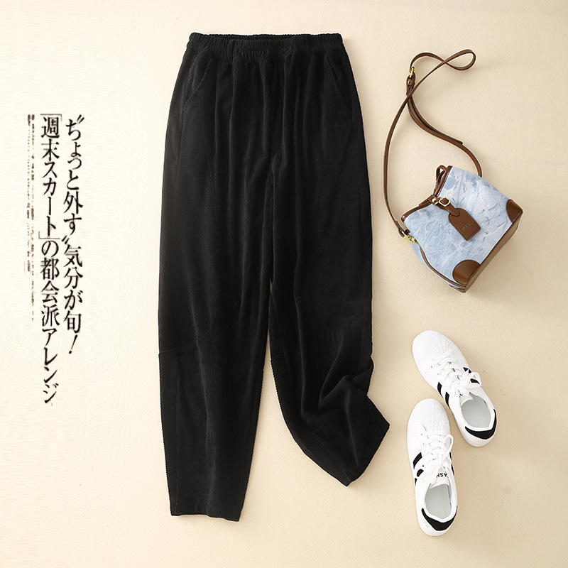 Главная страница > Женские вельветовые брюки-шаровары в стиле ретро на раннюю весну 2025 года, с эластичным поясом, свободного кроя, стройнящие, однотонные, в гонконгском стиле