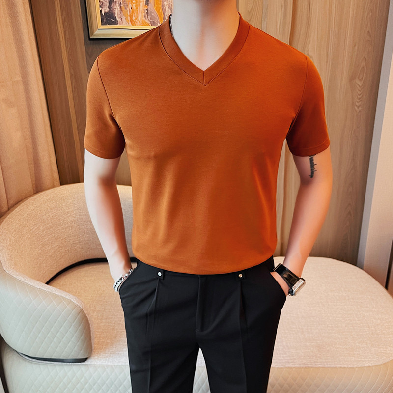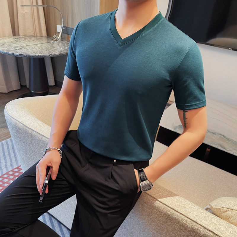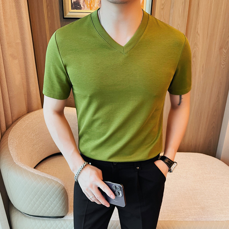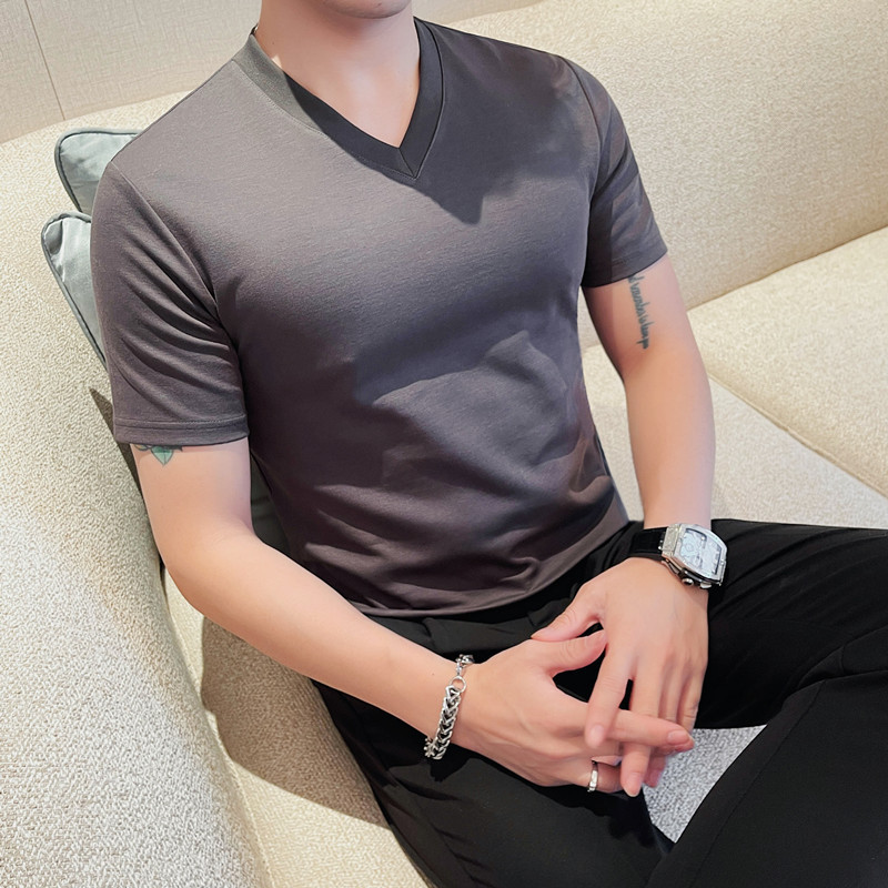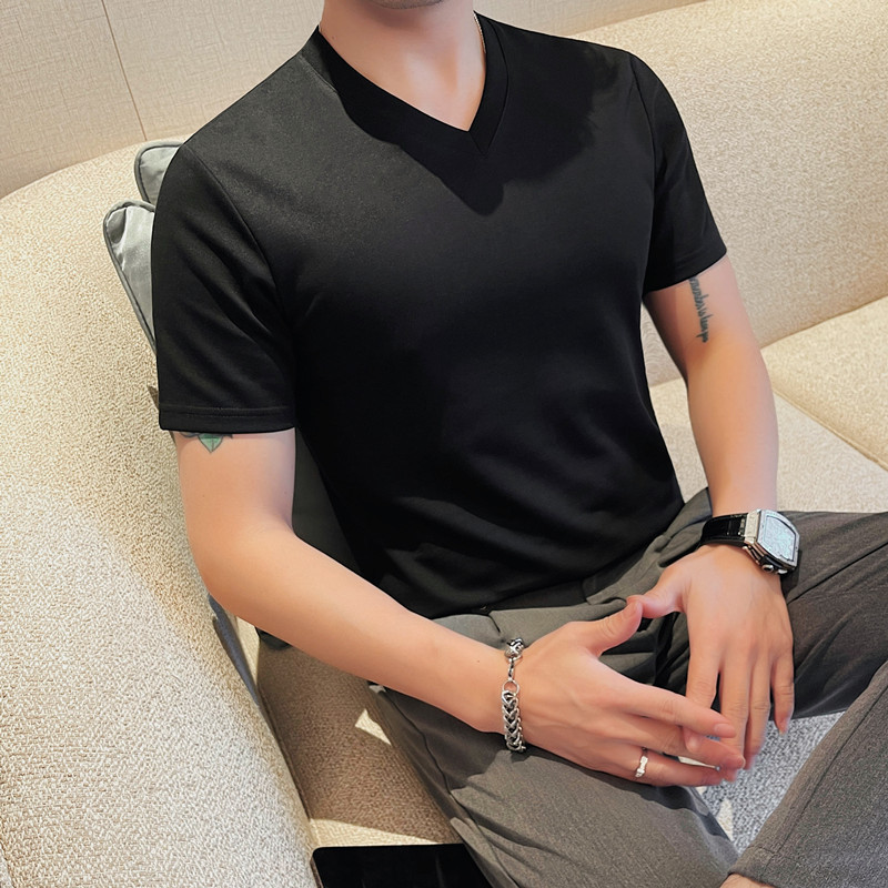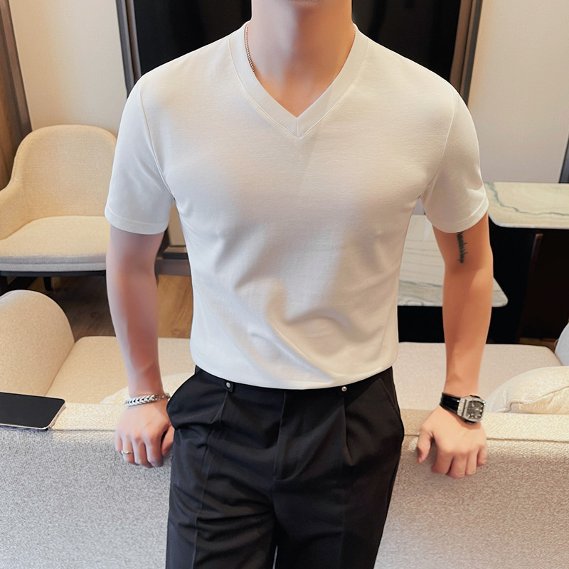 Главная страница > 2024 Летняя новая мужская мужская одежда легкий ветер V-образный вырез досуг тонкая повседневная простая футболка с короткими рукавами