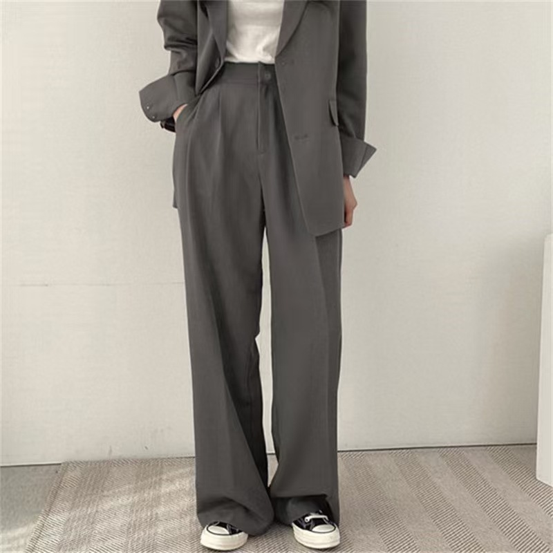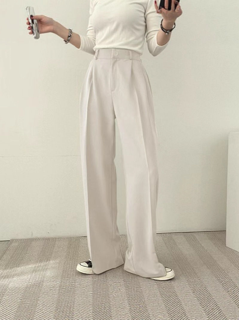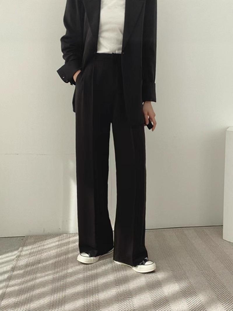 Главная страница > Черные женские брюки, весенние, летние и осенние, свободные широкие брюки с высокой талией для маленьких людей, элитные узкие прямые брюки с драпировкой, модные.