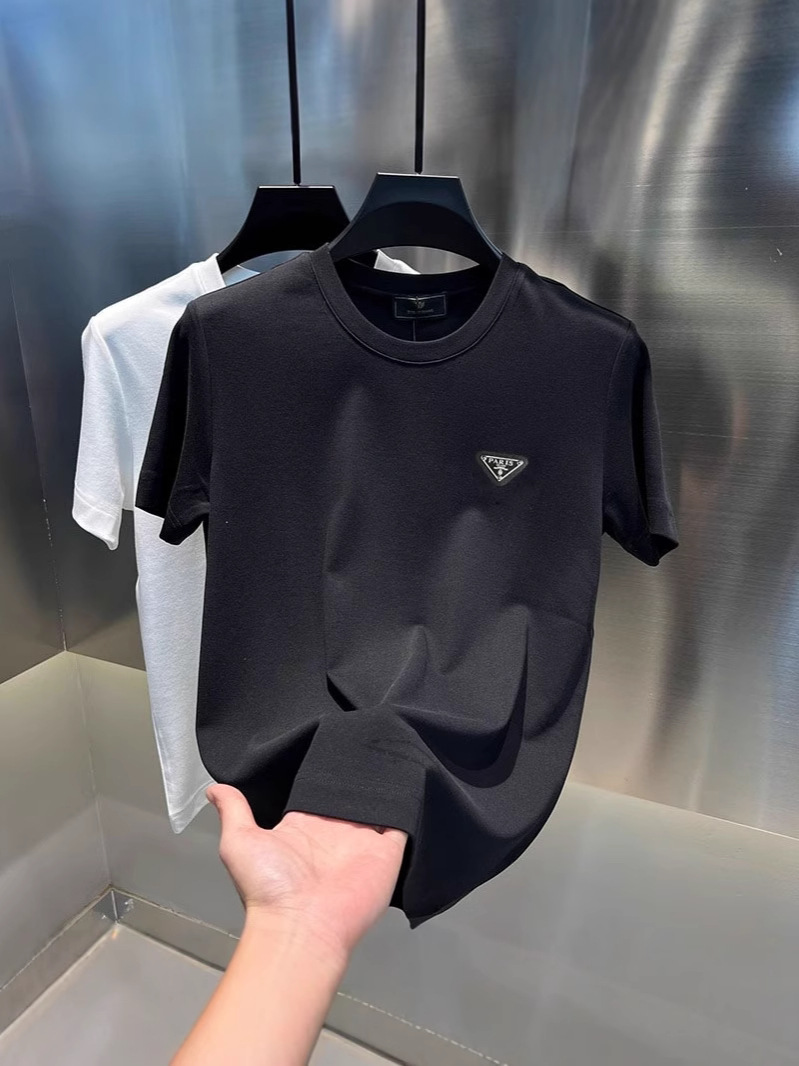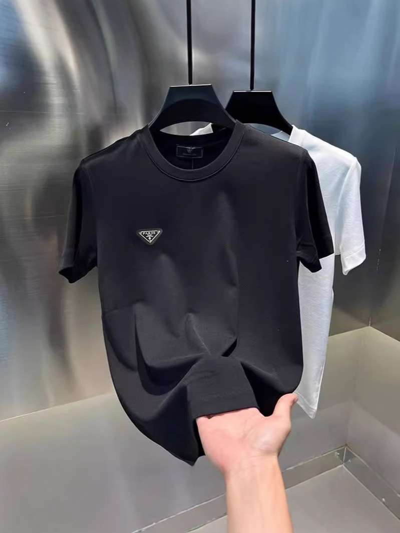 Главная страница > Легкий экстравагантный классический треугольный металлический логотип значок на груди с короткими рукавами футболка базовая пара топ мужской одежды