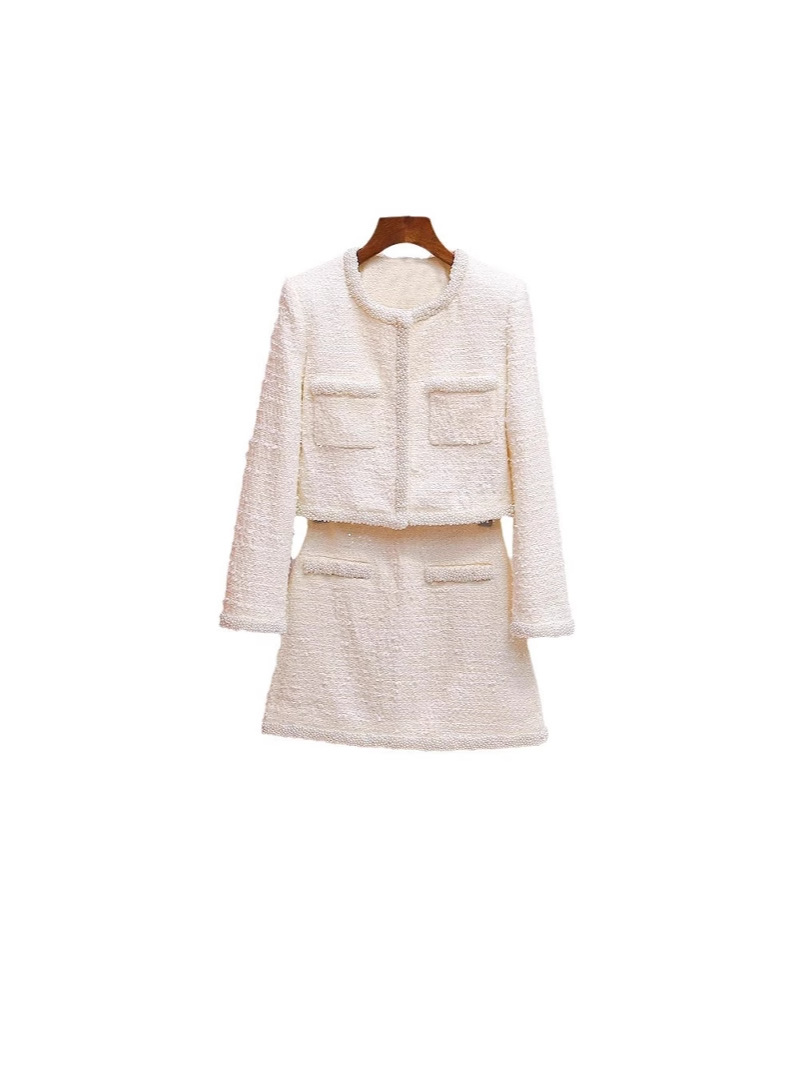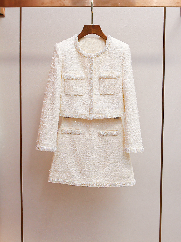 Главная страница > Новый осенний стиль SP Home, модный и элегантный, твидовый короткий жакет с тяжелым бисером + юбка для женщин