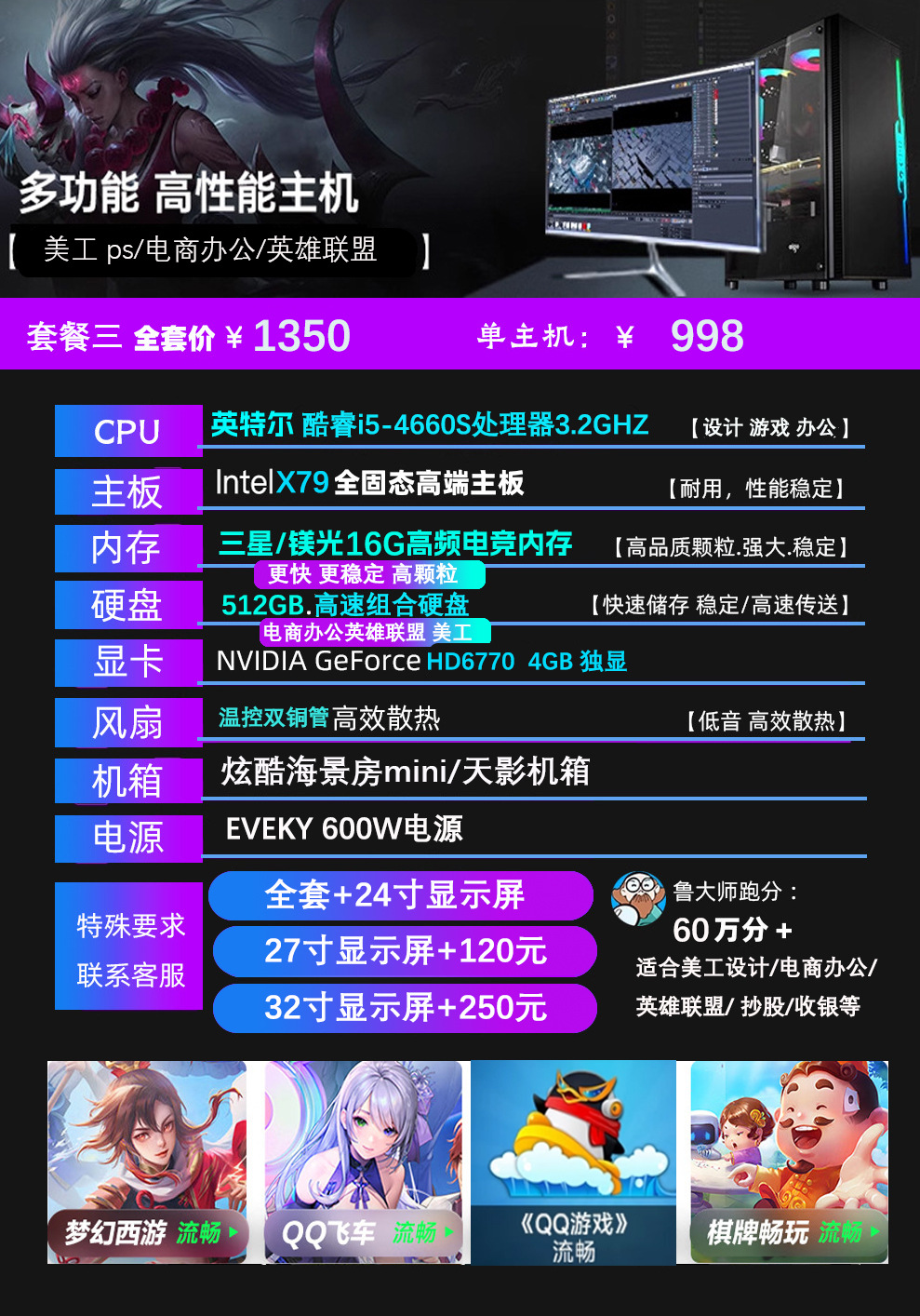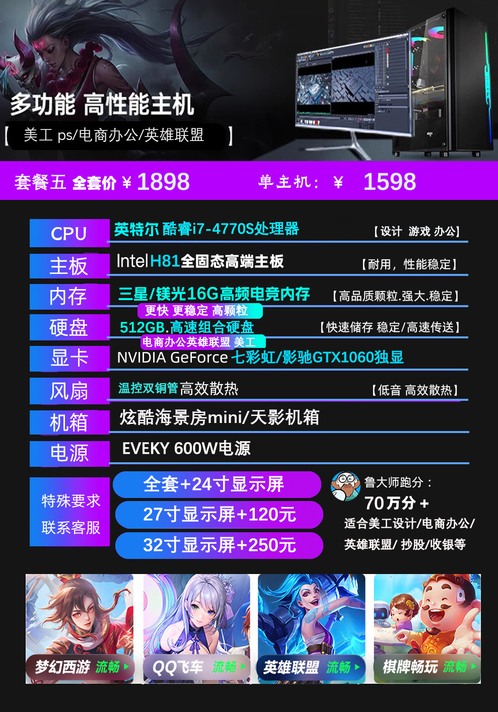 Пакет Четыре: Одноадресный хост (Веб-серфинг/Офисная работа/League of Legends/Графический дизайн)