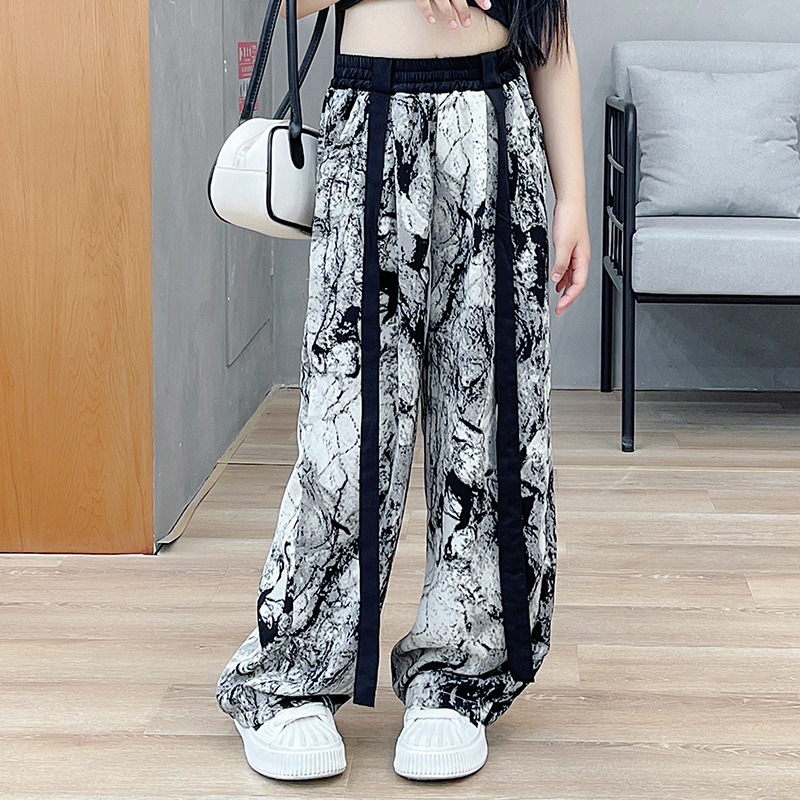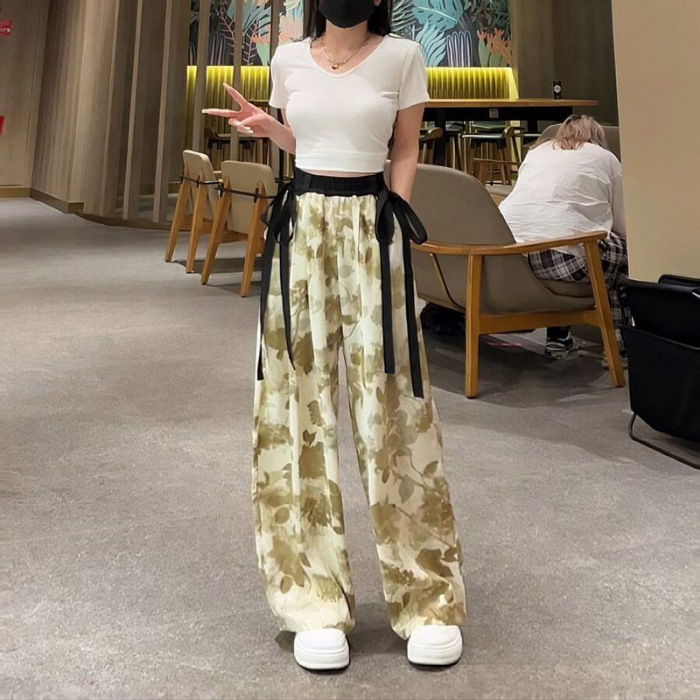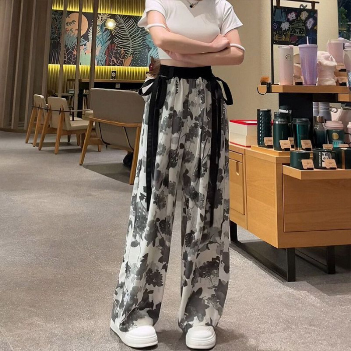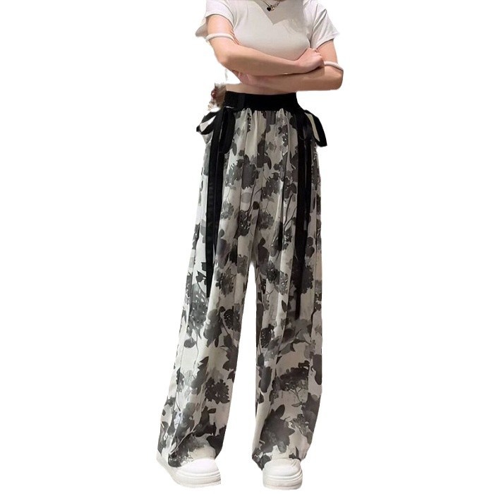 Главная страница > Широкие брюки для женщин в стиле китайской живописи, летний тонкий вариант, новинка 2025 года, корейская версия, с высокой талией, драпированные, из ледяного шелка с эффектом тай-дай.