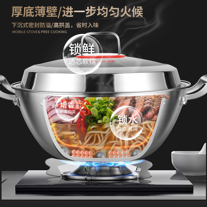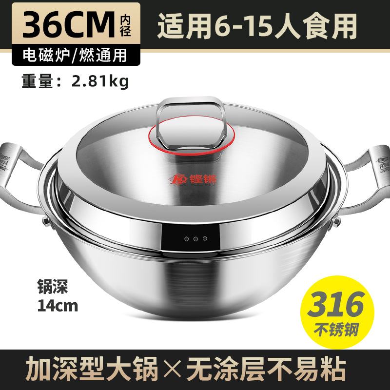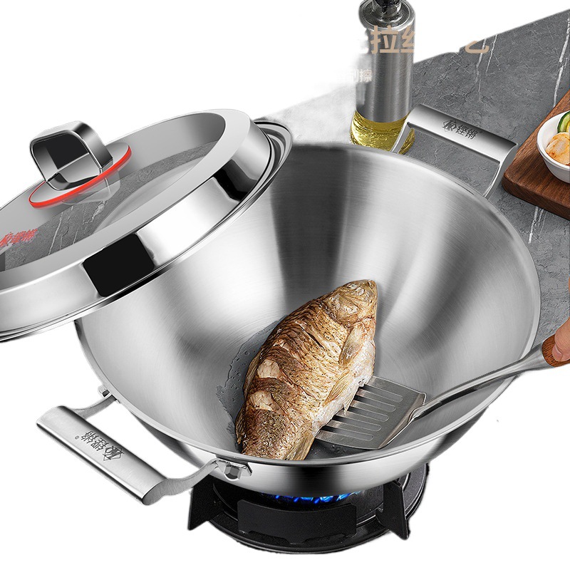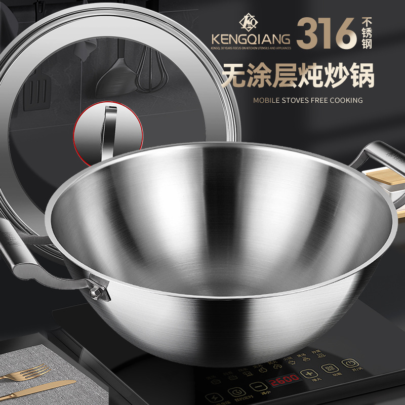 Оптовая Бинауральная Нержавеющая Сталь 316 Вок Газ Бытовая Глубокая Сковорода Для Тушения Без Покрытием Антипригарное Сковорода Вок