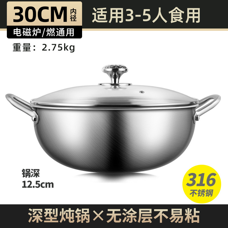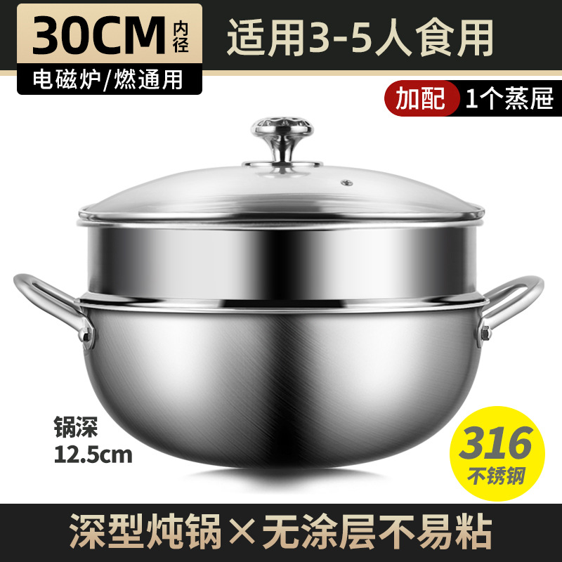 ☆★30 см с двухслойной пароваркой [316 стальная антипригарная кастрюля для тушения и приготовления пищи]☆★