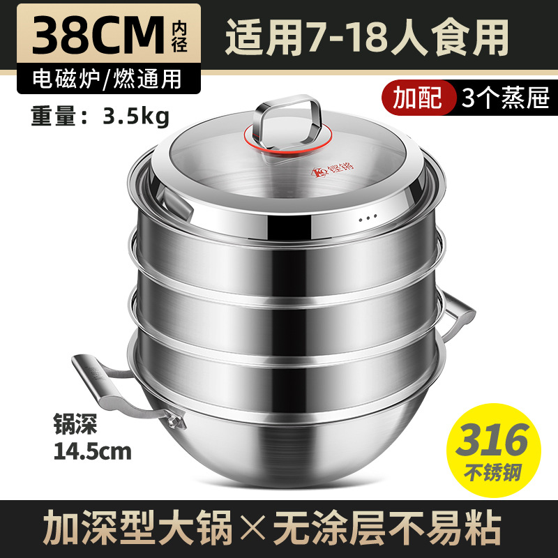☆★38 см с трехслойной пароваркой [316 стальная кастрюля с антипригарным покрытием]☆★
