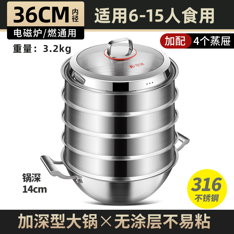 ☆★36 см с 4-слойной пароваркой [316 стальная антипригарная кастрюля для тушения и приготовления пищи]☆★