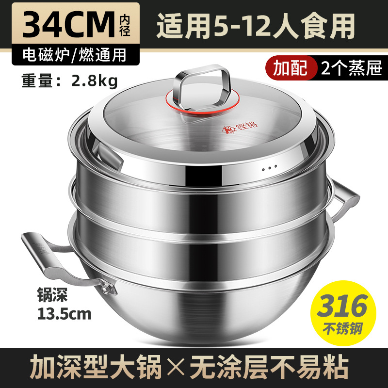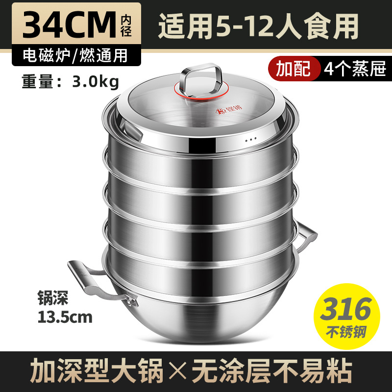 ☆★34 см с четырехслойной пароваркой [316 стальная антипригарная кастрюля для тушения и приготовления пищи]☆★