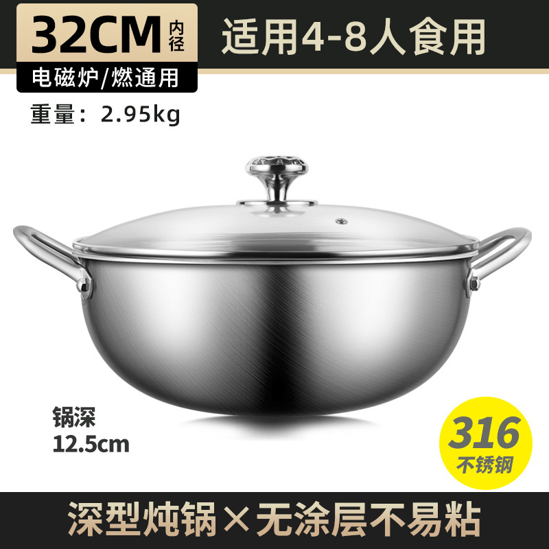 ☆★32 см с двухслойной пароваркой [316 стальная антипригарная кастрюля для тушения]☆★