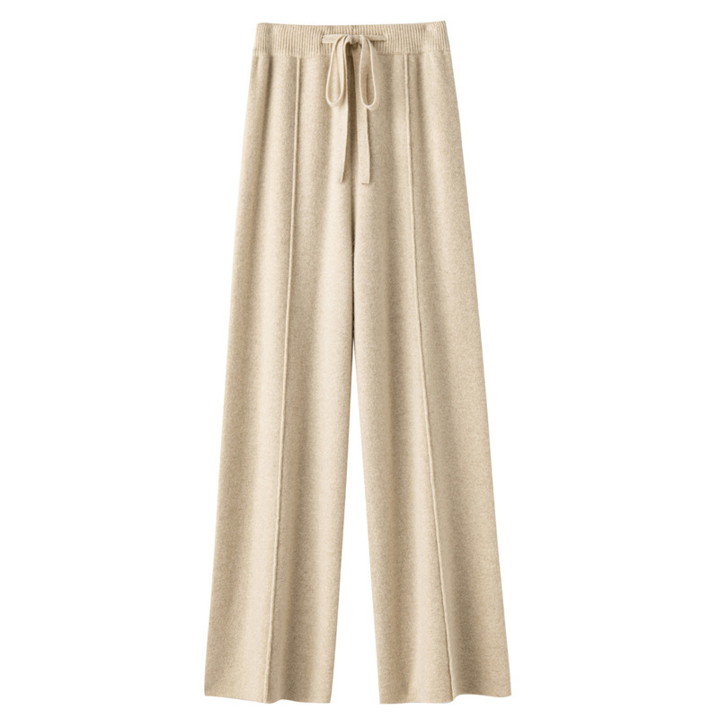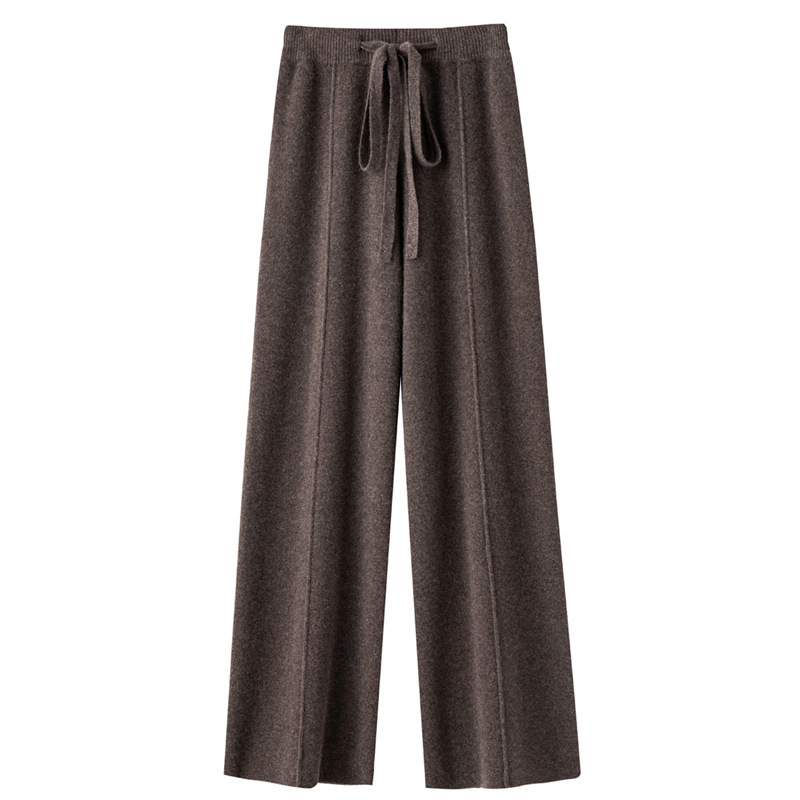 Главная страница > Шерстяные смешанные 2024 осень-зима новые женские широкие брюки с высокой талией, свободная тонкая и эласткая талия носить трикотажные брюки