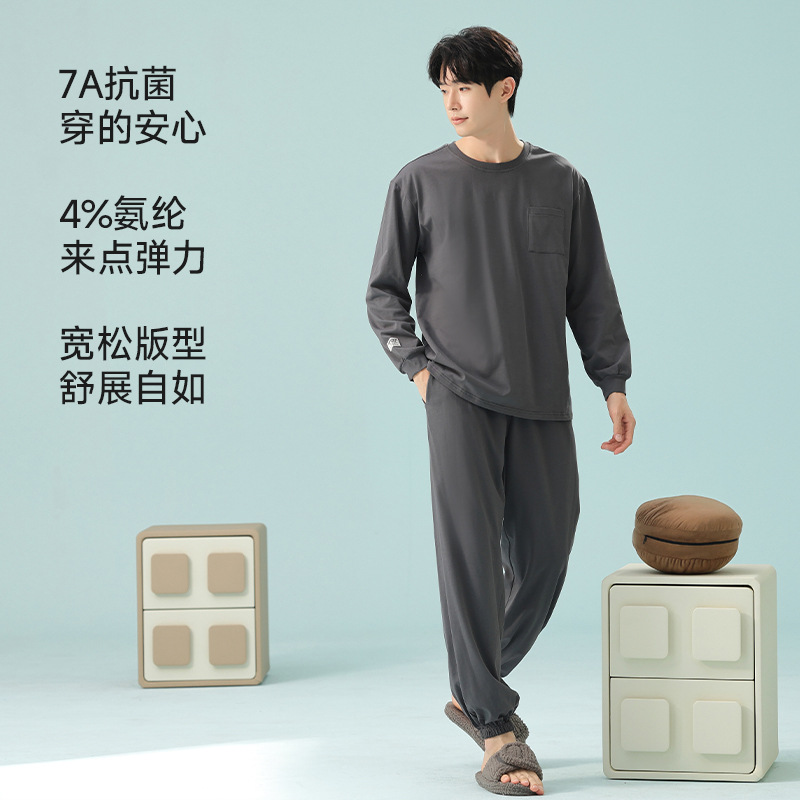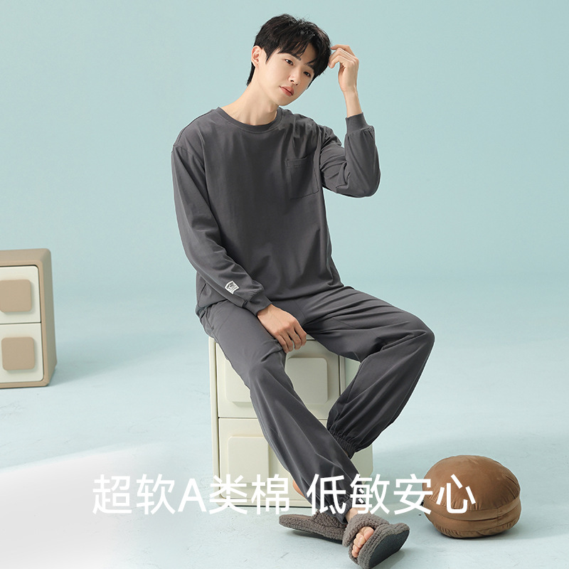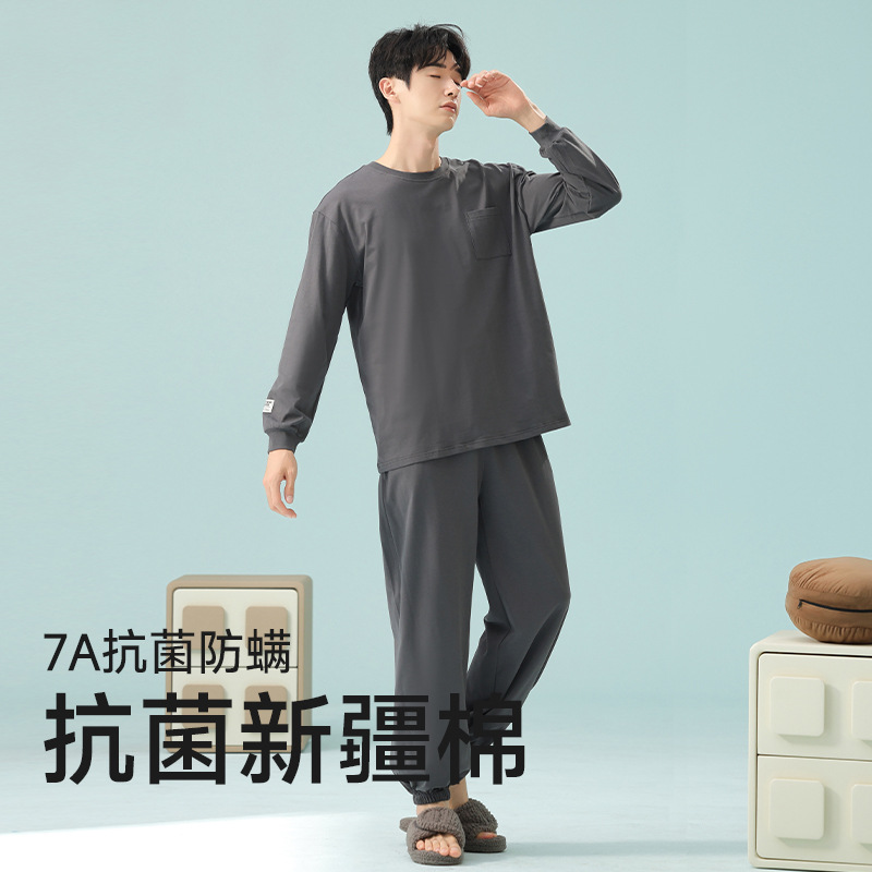 Главная страница > [Антибактериальный хлопок Синьцзяна] Весенняя и осенняя хлопковая пижама мужской длинный рукав с круглым вырезом