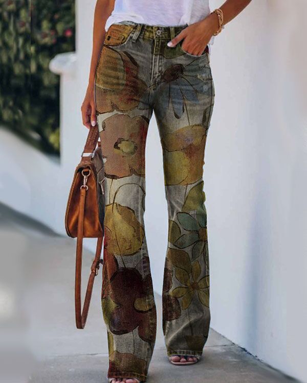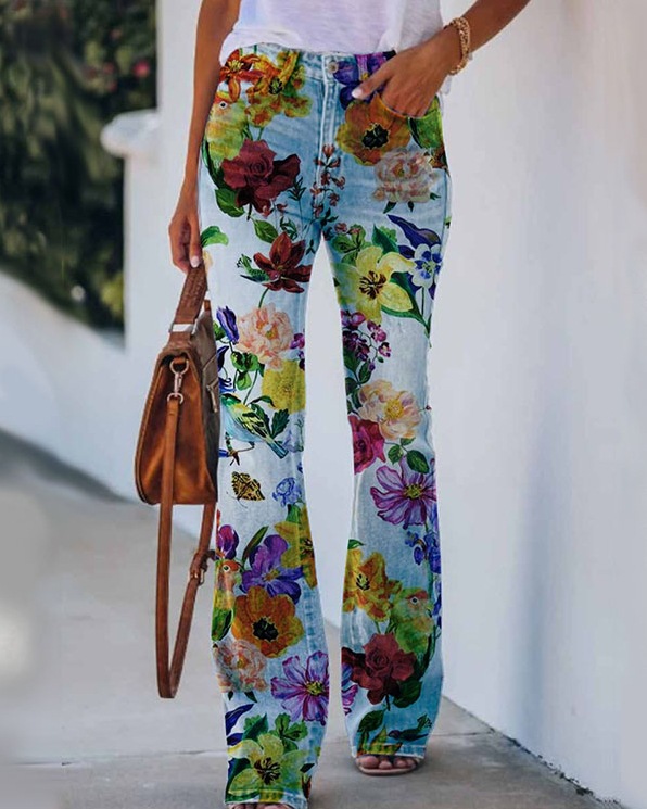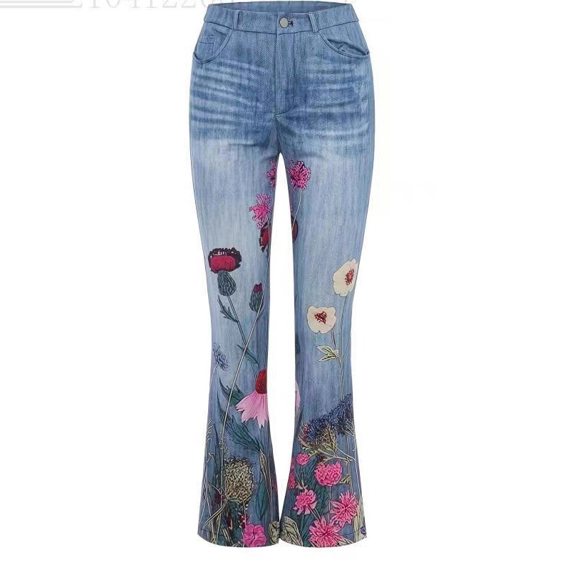 Главная страница > В наличии 2025 новые AliExpress eBay европейские и американские внешнеторговые женские повседневные тонкие длинные брюки больших размеров с цветочным принтом