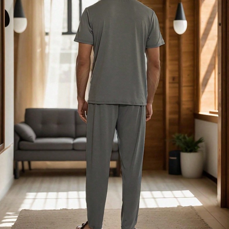 Мужской летний домашний костюм 2025 года, шорты и футболка с принтом, повседневный, с круглым вырезом, двухпредметный комплект