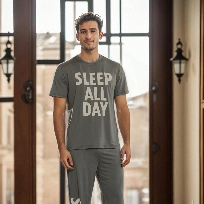 Главная страница > Мужской летний домашний костюм 2025 года, шорты и футболка с принтом, повседневный, с круглым вырезом, двухпредметный комплект