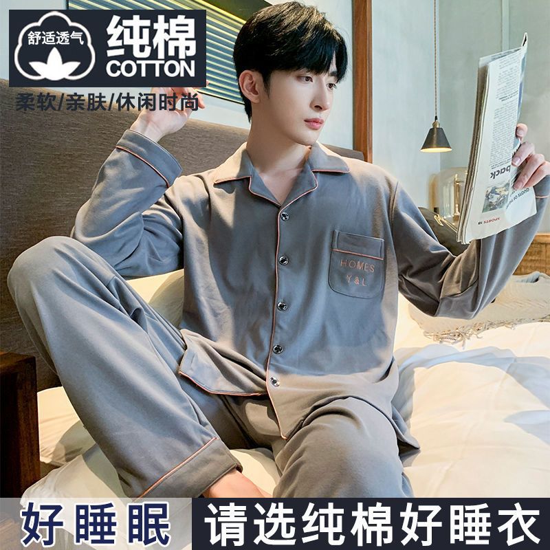 Главная страница > 100% двусторонние хлопковые пижамы мужские с длинными рукавами осенне-зимние хлопковые мужские молодежные, среднего и пожилого возраста весенне-летний комплект домашней одежды