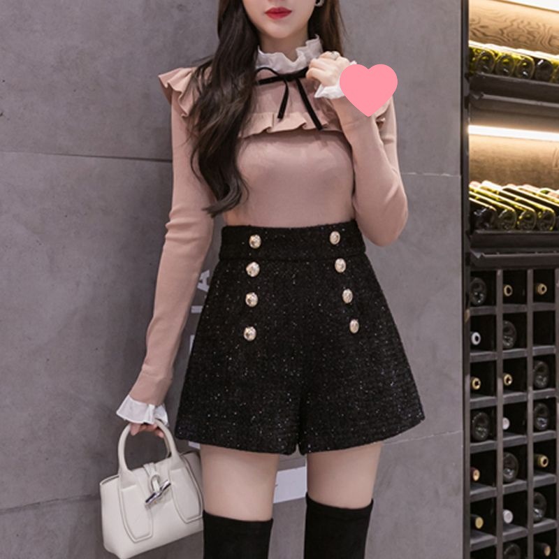 2025春季新款小香风短裤女宽松显瘦阔腿裤气质名媛时尚亮丝靴裤潮