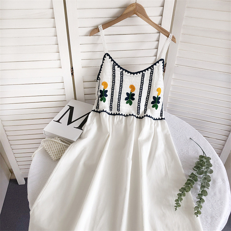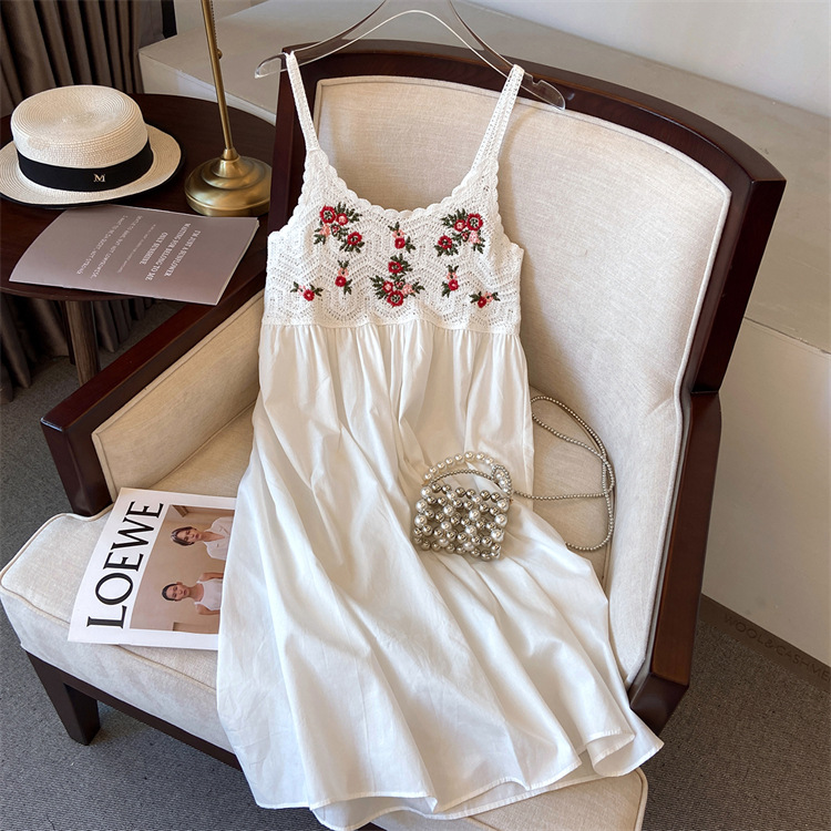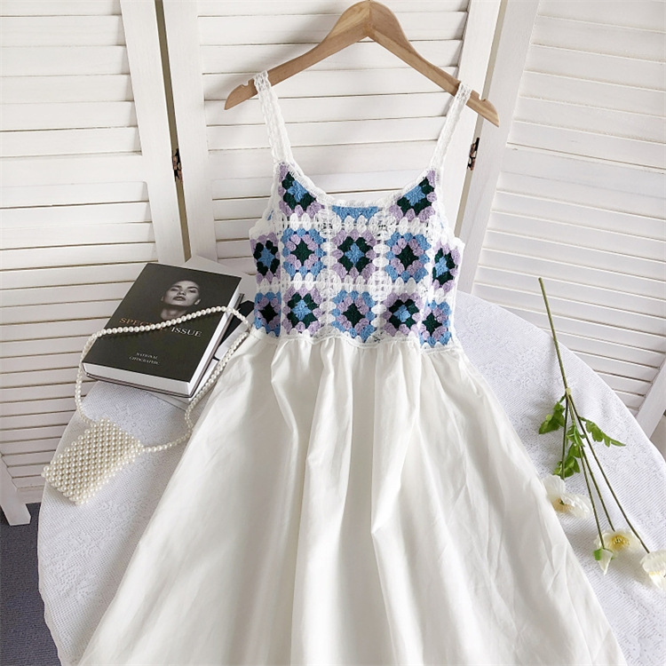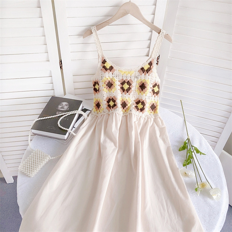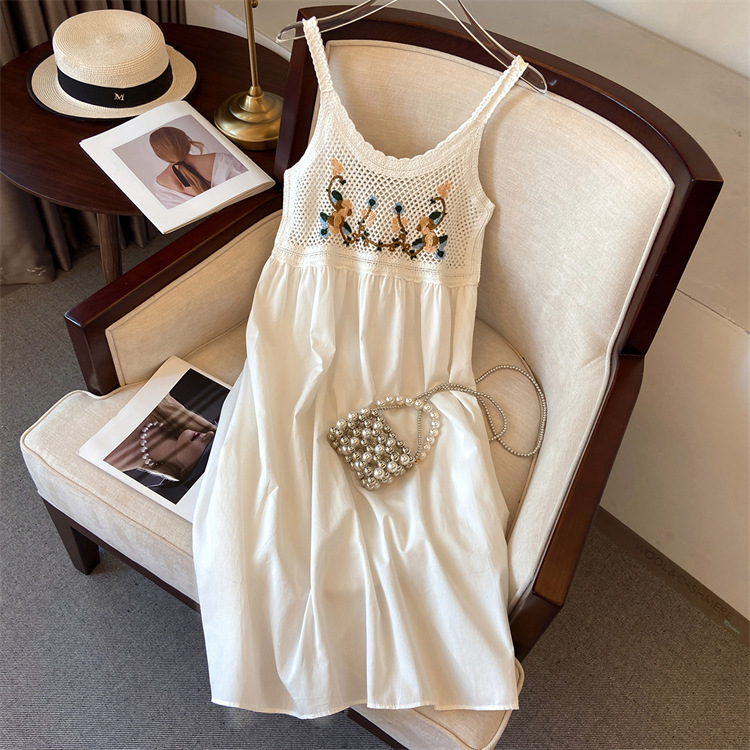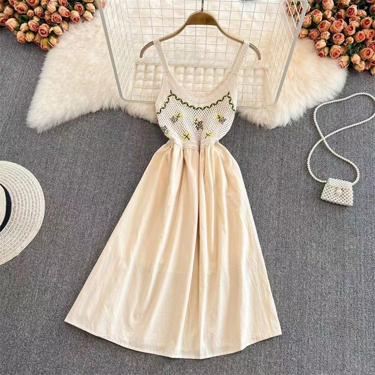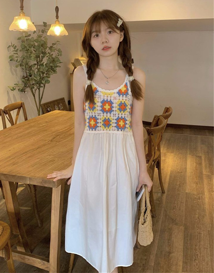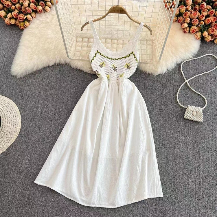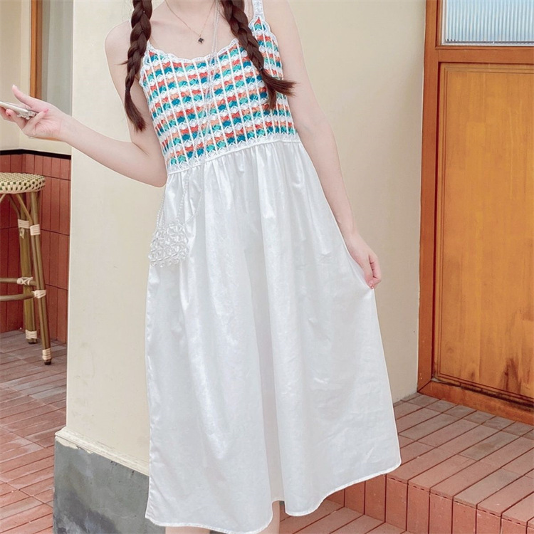 Платье средней длины с круглым вырезом Маленькая юбка-слинг Маленькая Фея Милый праздничный стиль Сладкая юбка-слинг Полый крутой стиль