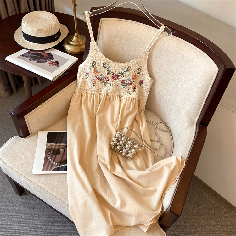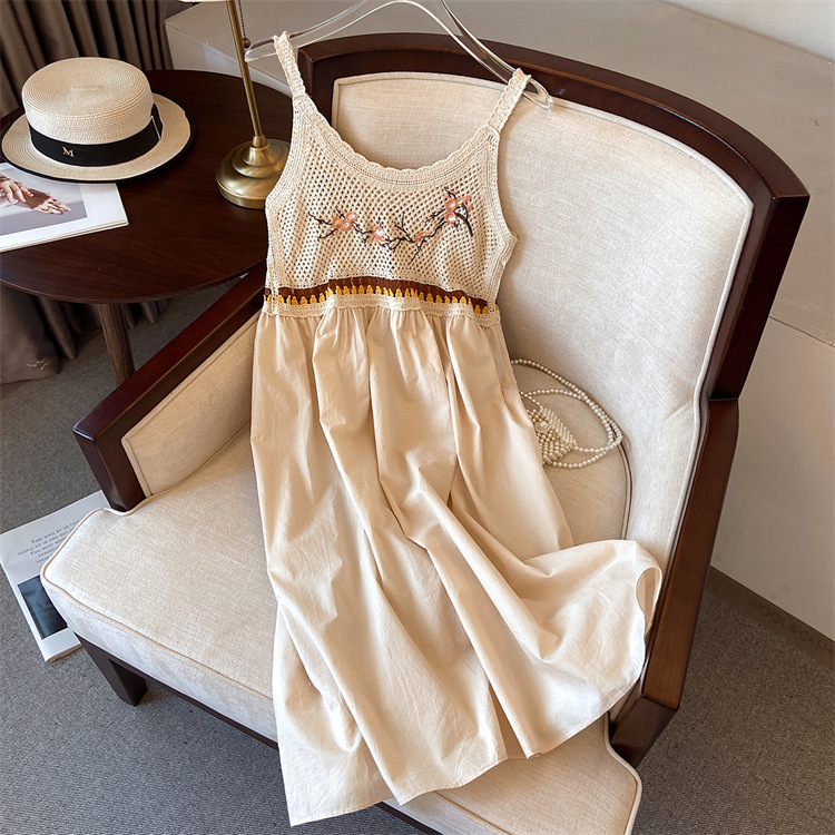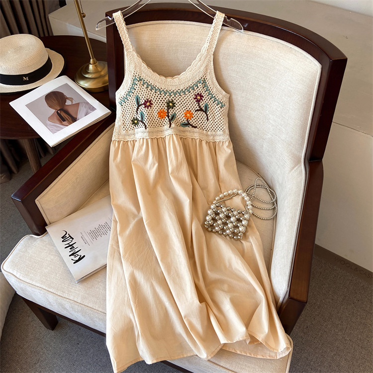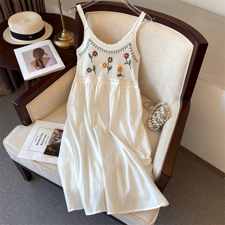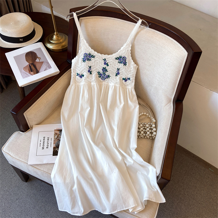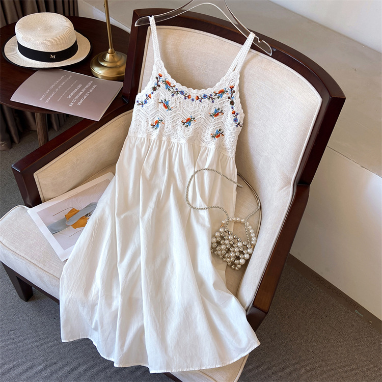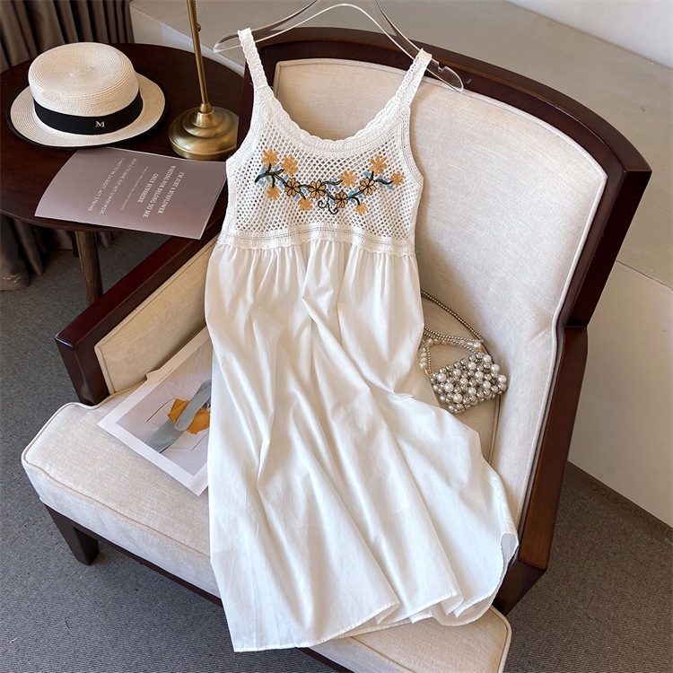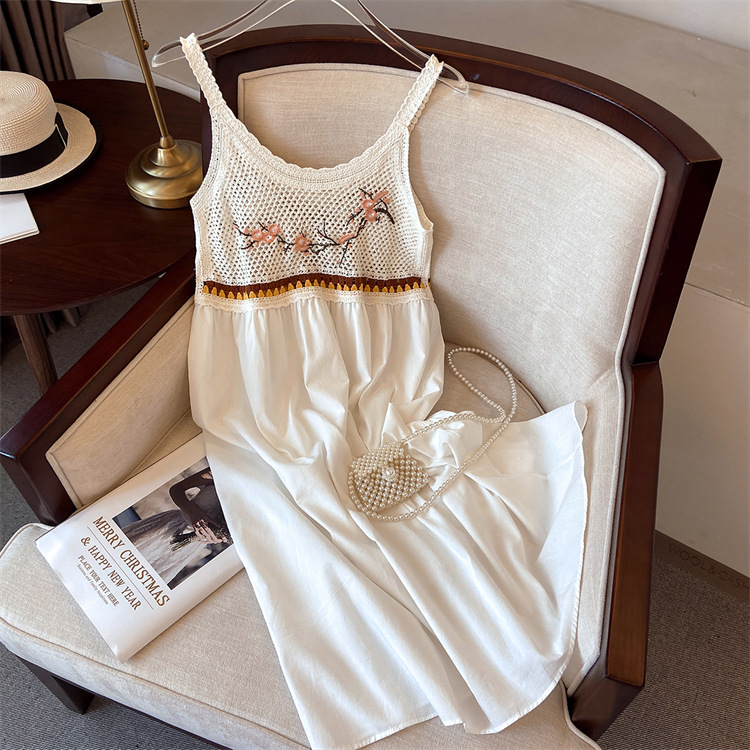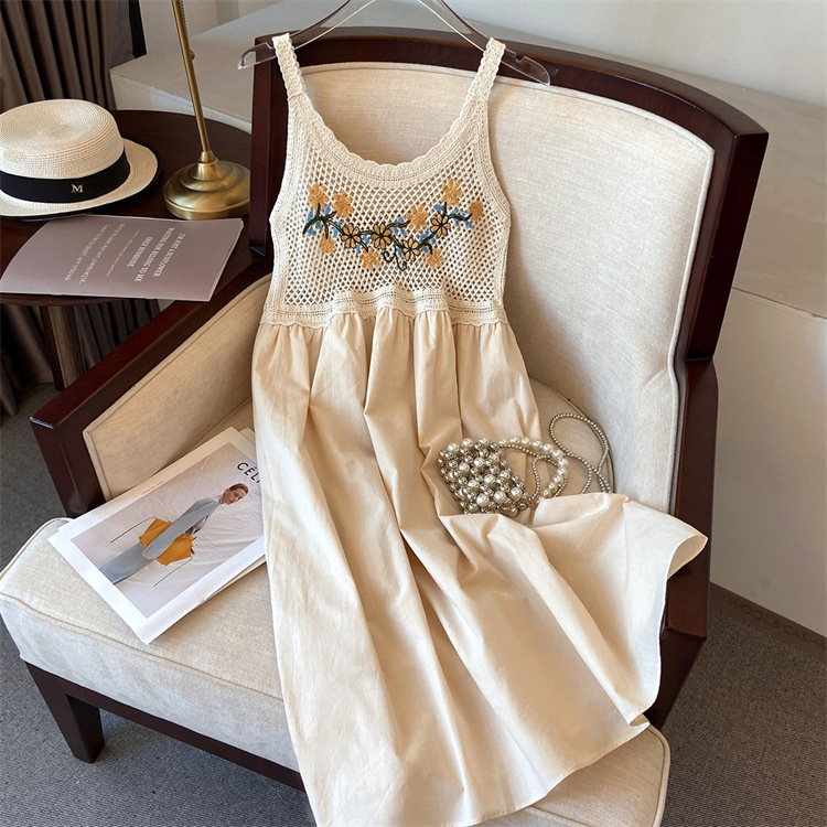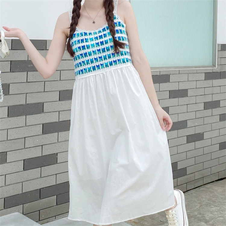 Платье средней длины с круглым вырезом Маленькая юбка-слинг Маленькая Фея Милый праздничный стиль Сладкая юбка-слинг Полый крутой стиль