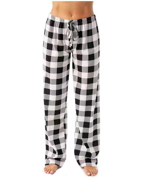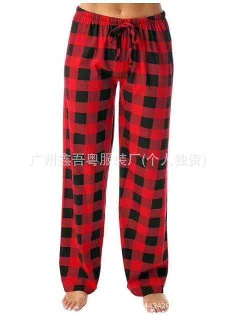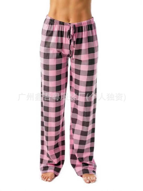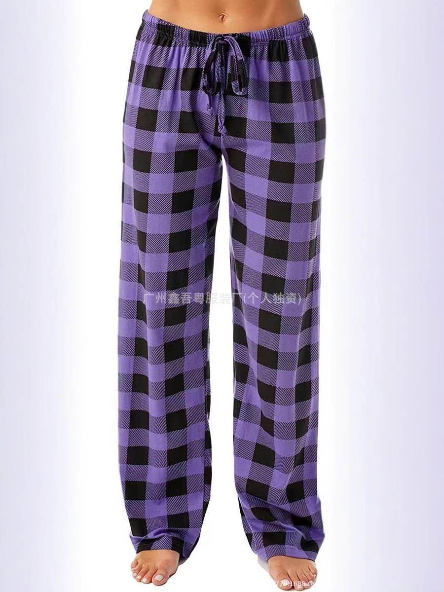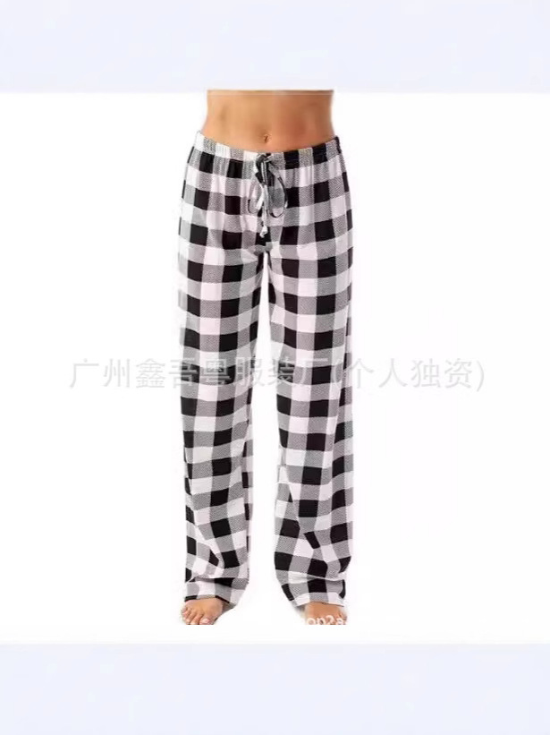 Главная страница > Amazon, внешняя торговля, женские весенне-осенние брюки в клетку с принтом на шнурке, повседневные брюки, домашние брюки, повседневные универсальные брюки с высокой талией