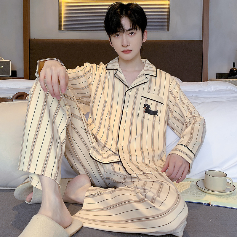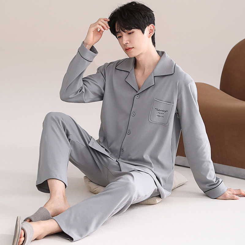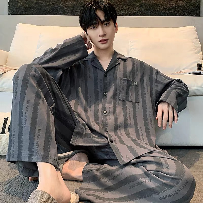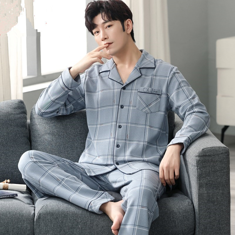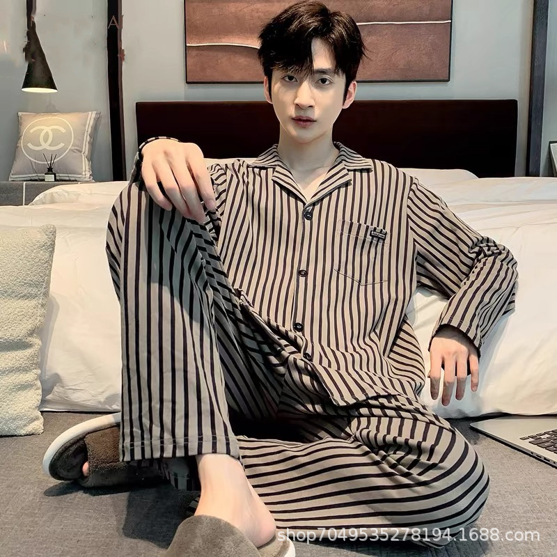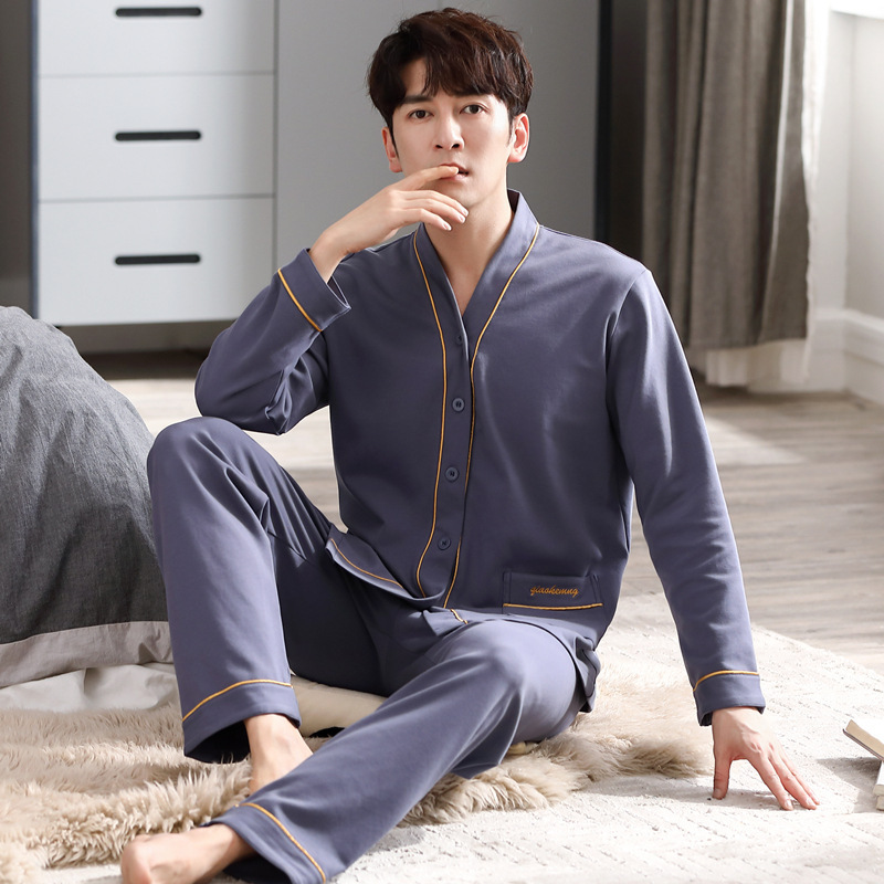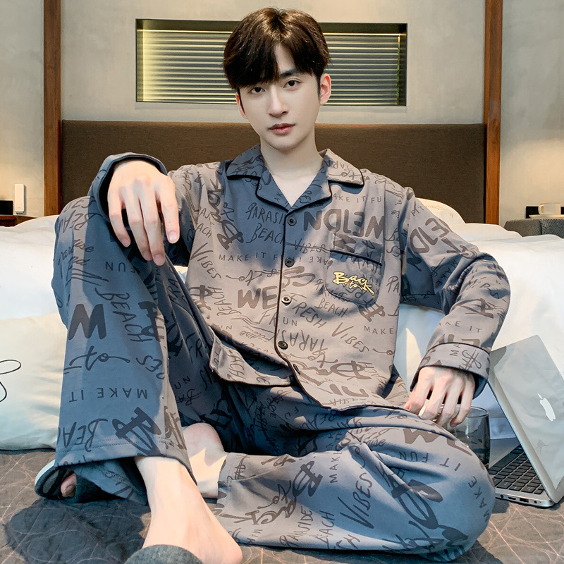 Главная страница > Высококачественные хлопковые пижамы мужские весенне-осенние мужские молодежные с длинными рукавами больших размеров повседневный осенне-зимний комплект домашней одежды