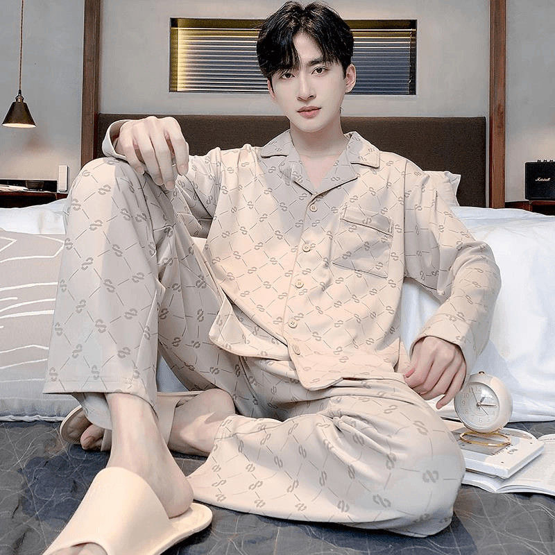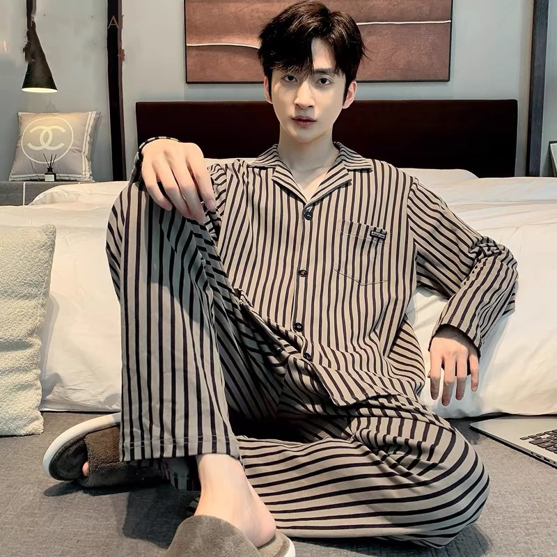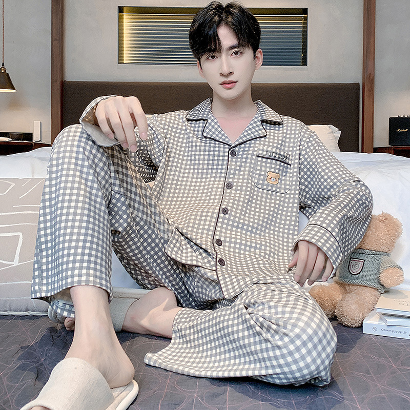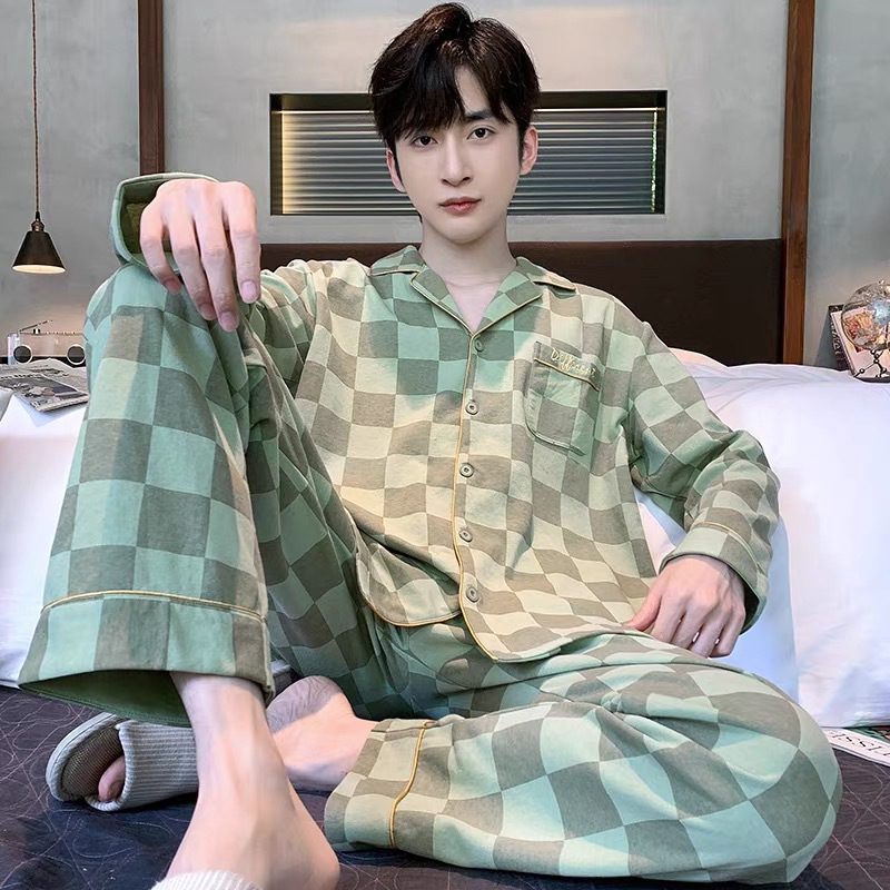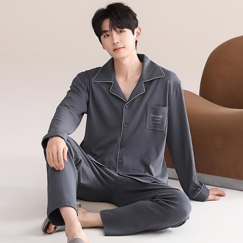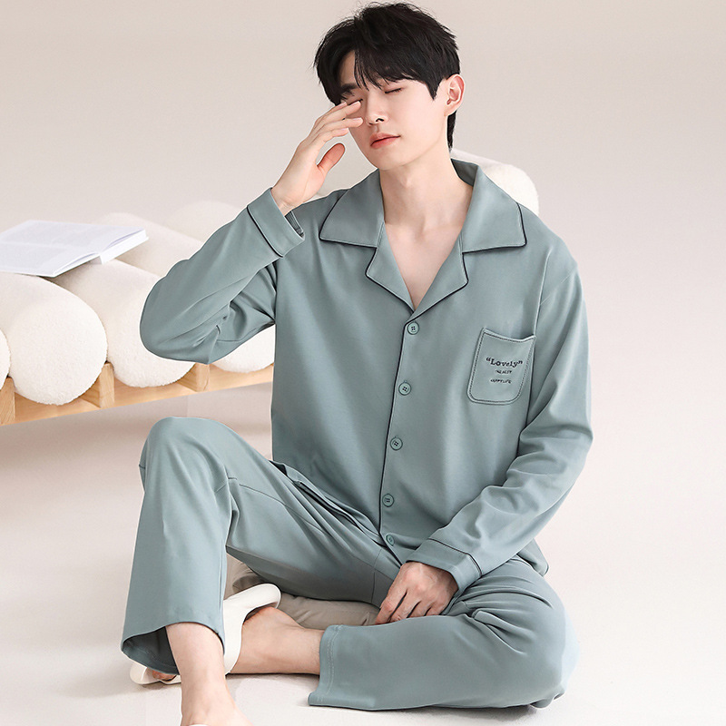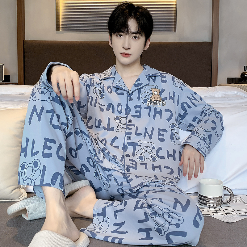 Главная страница > Высококачественные хлопковые пижамы мужские весенне-осенние мужские молодежные с длинными рукавами больших размеров повседневный осенне-зимний комплект домашней одежды