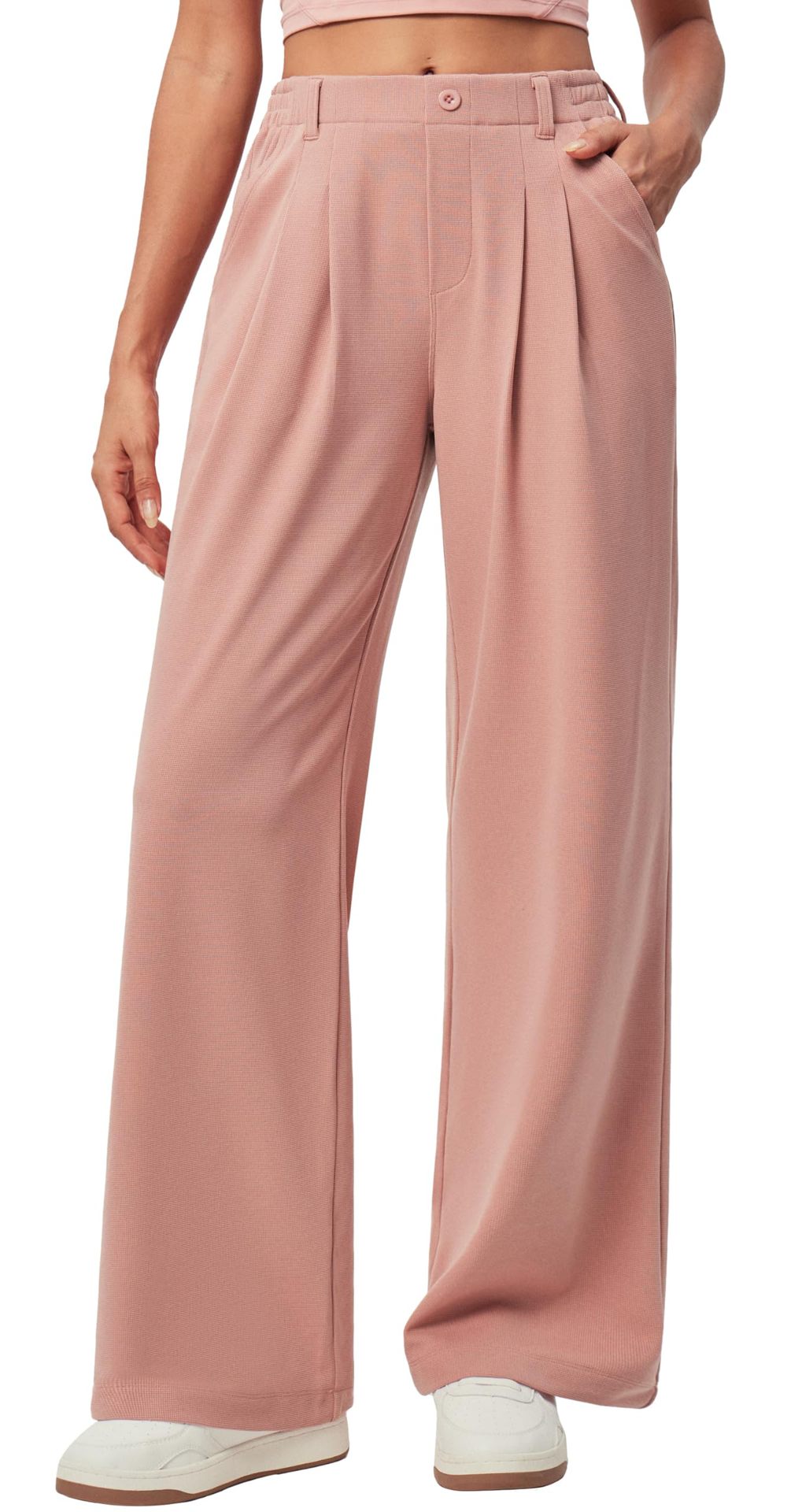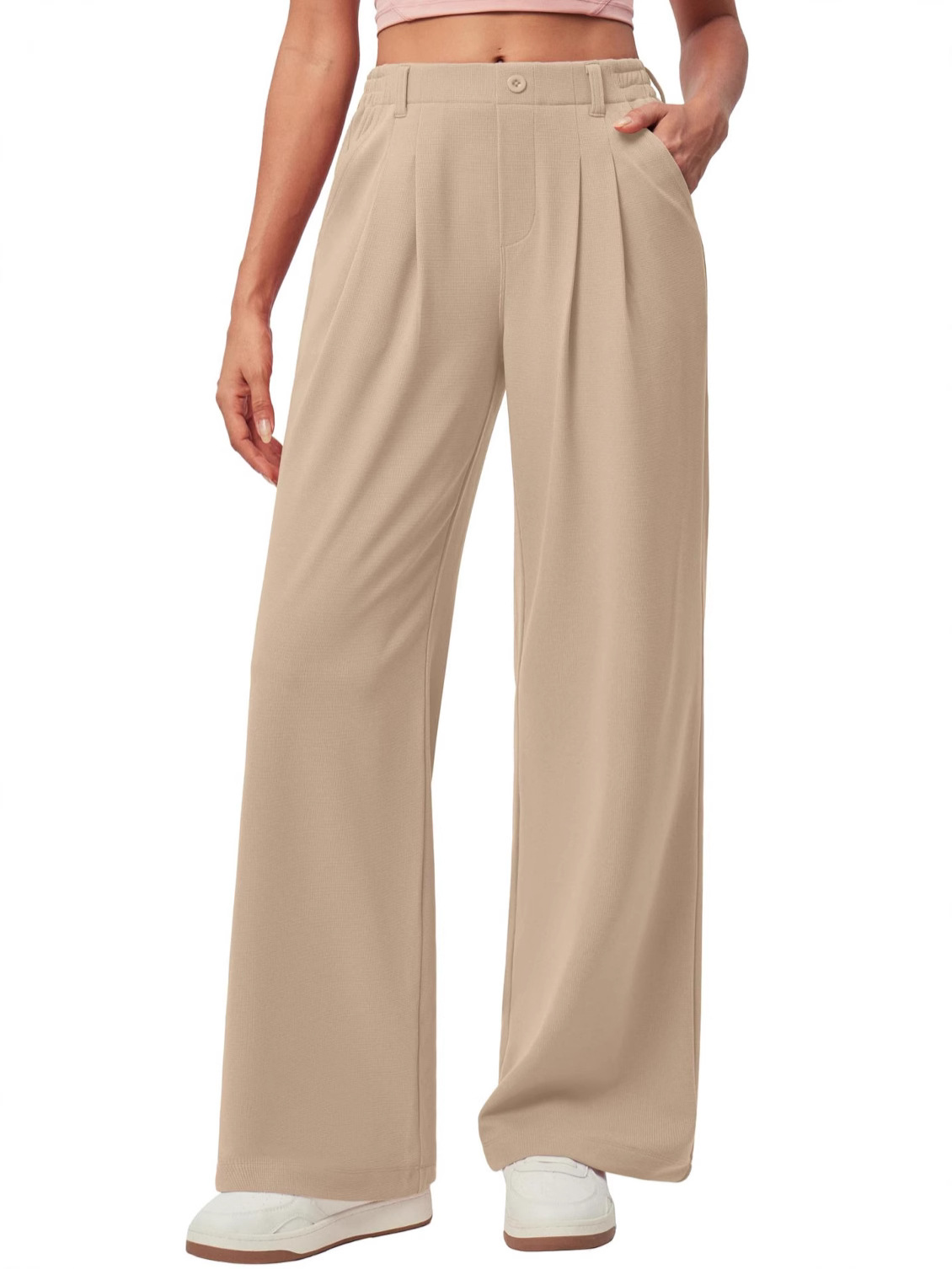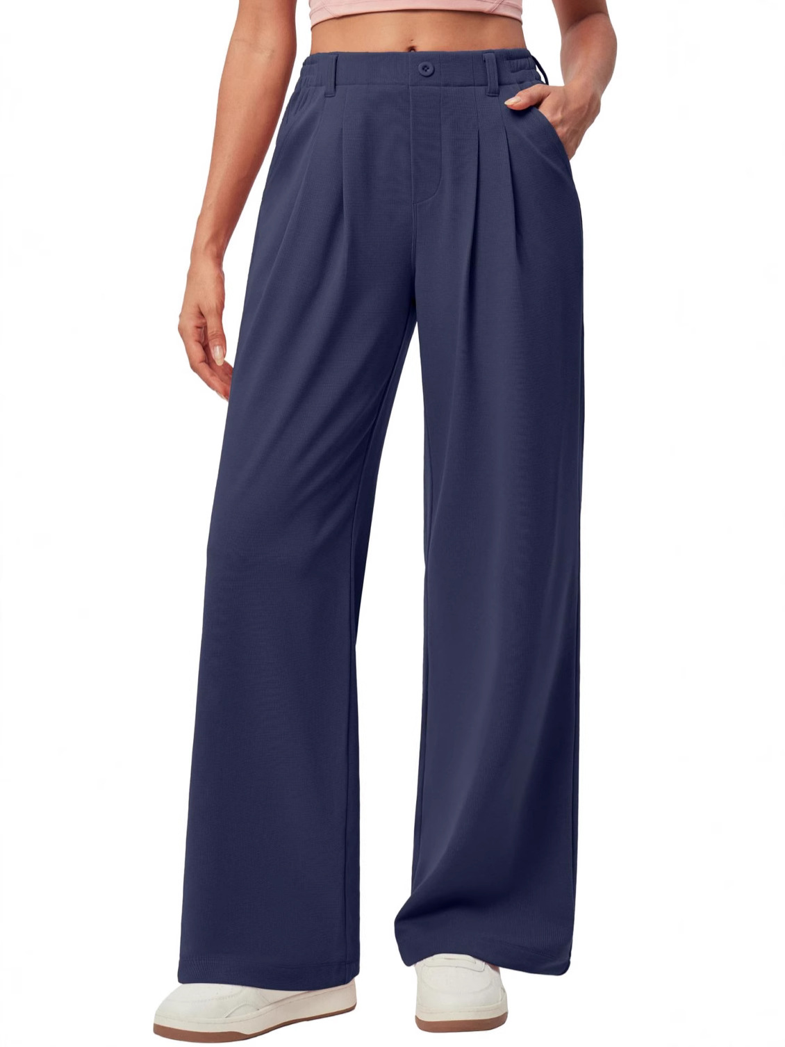Главная страница > Amazon новый стиль женские широкие ножки рабочие брюки вафли вязаные пуговицы с высокой талией повседневное платье широкие брюки