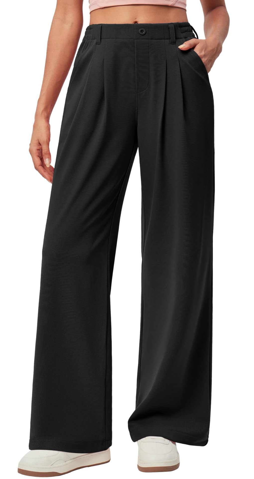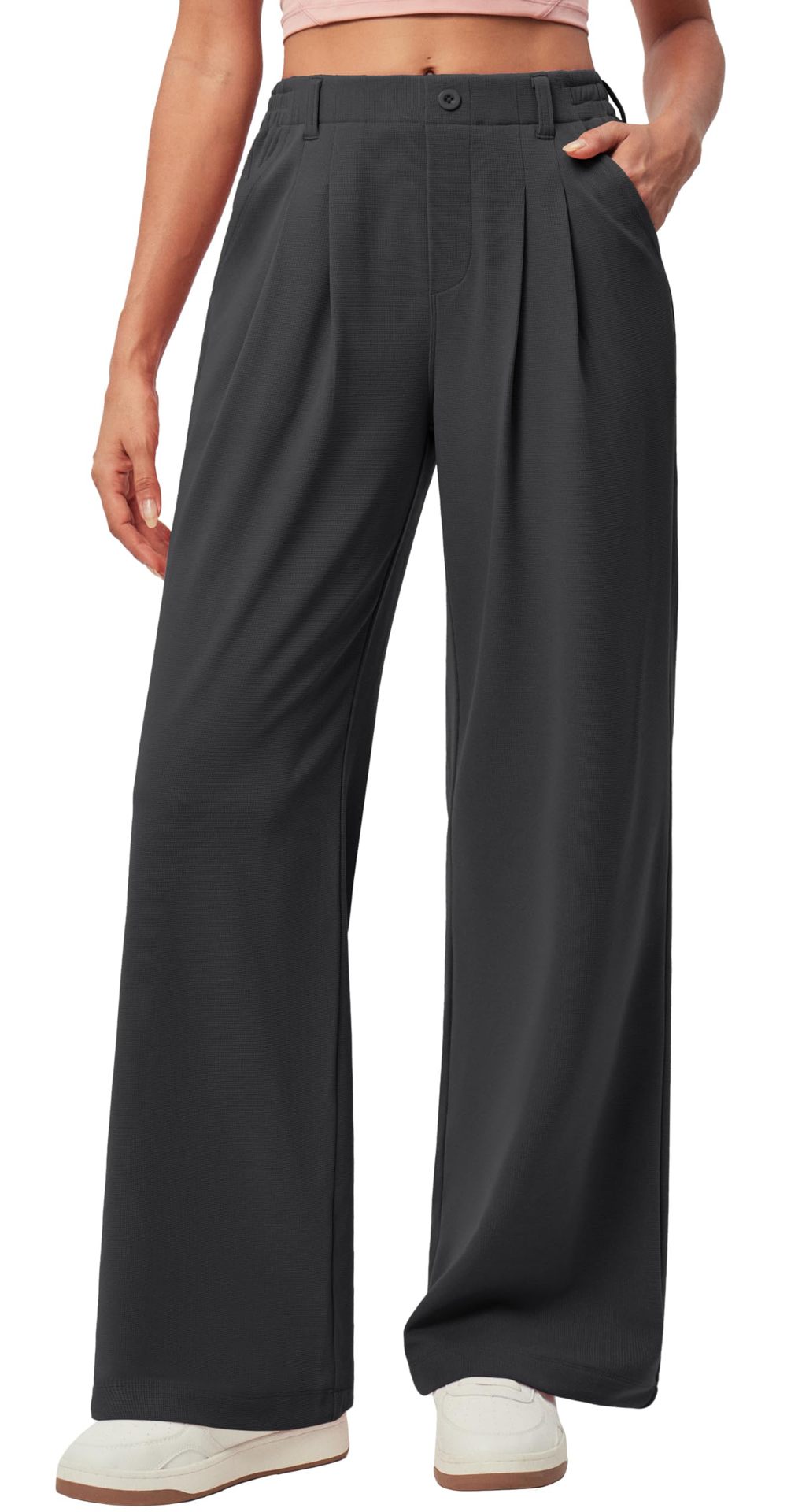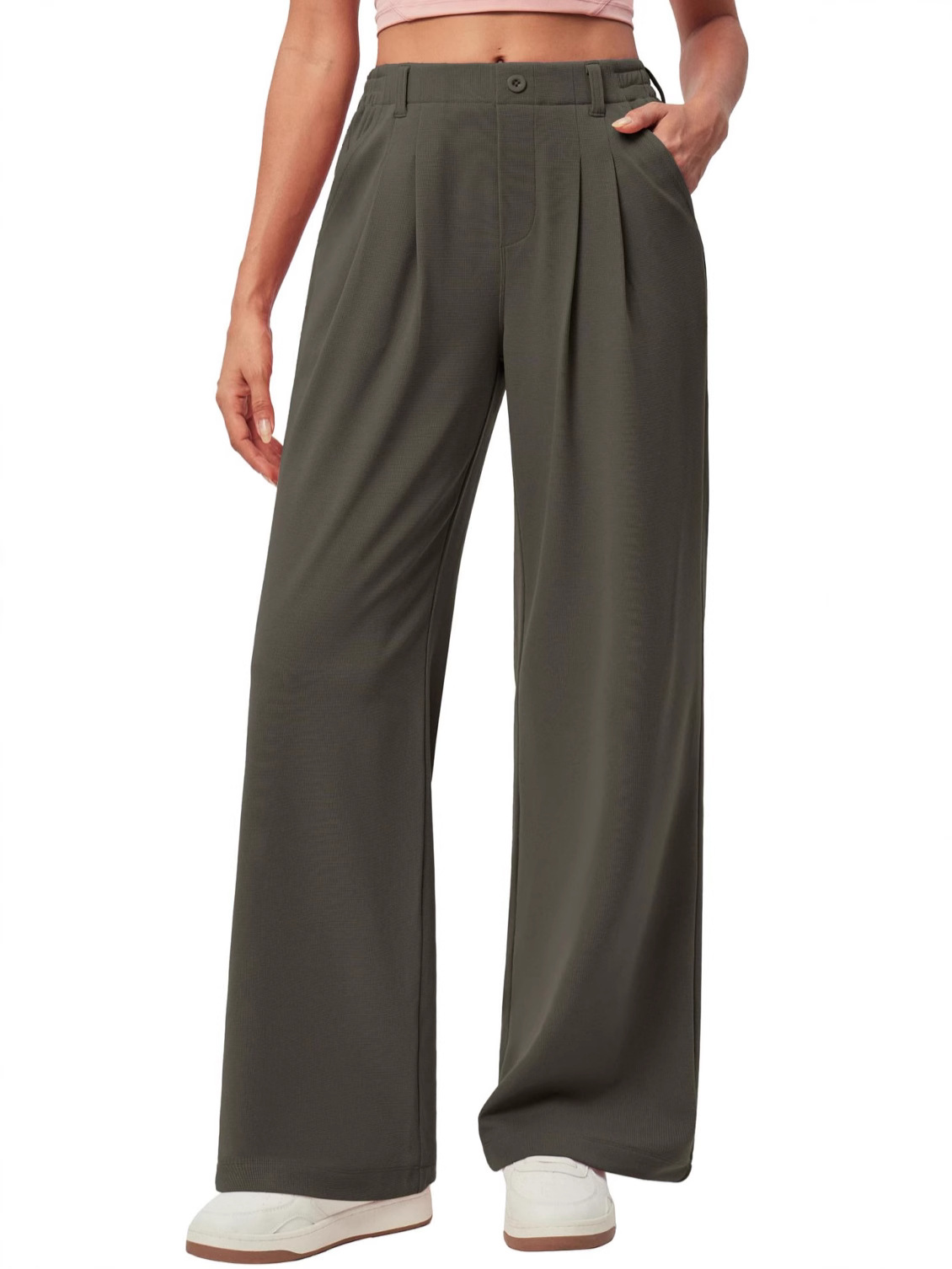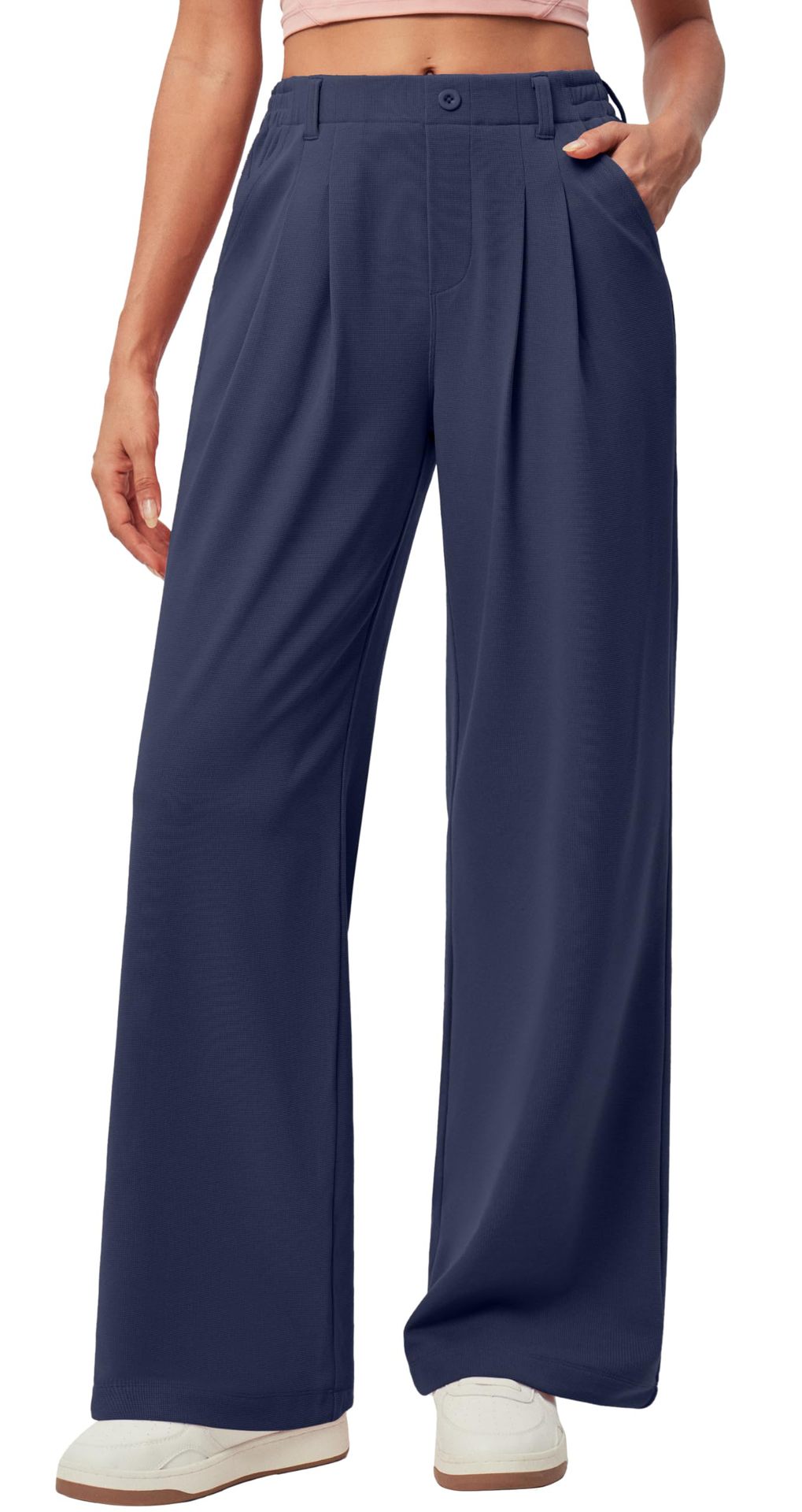 Главная страница > Amazon новый стиль женские широкие ножки рабочие брюки вафли вязаные пуговицы с высокой талией повседневное платье широкие брюки