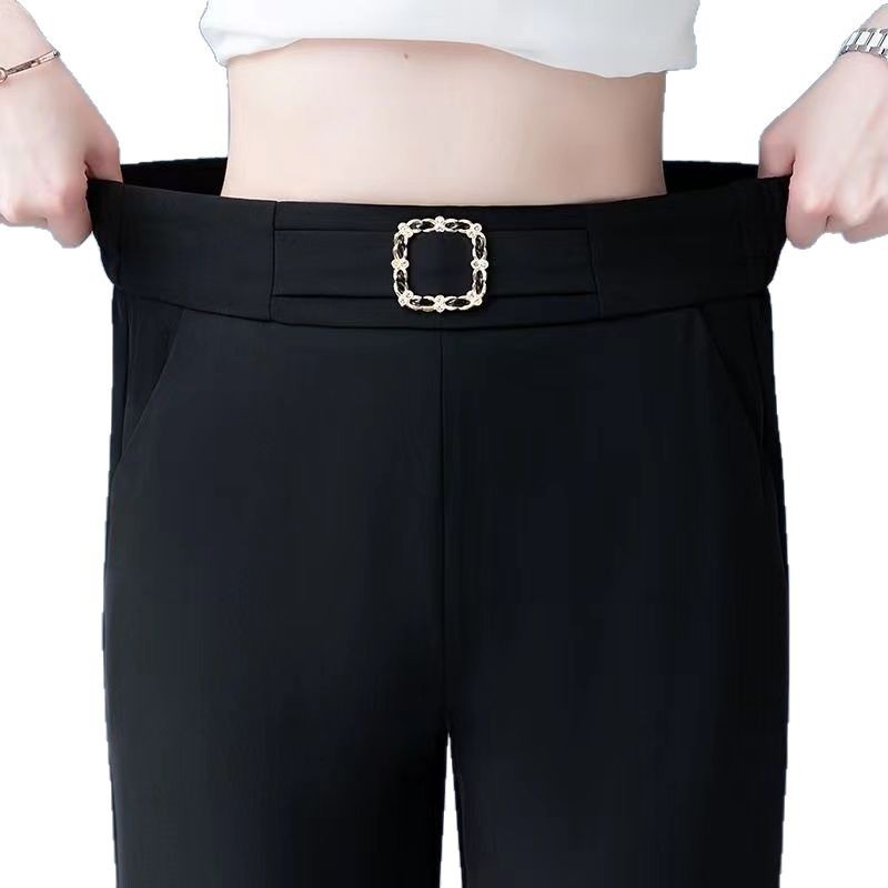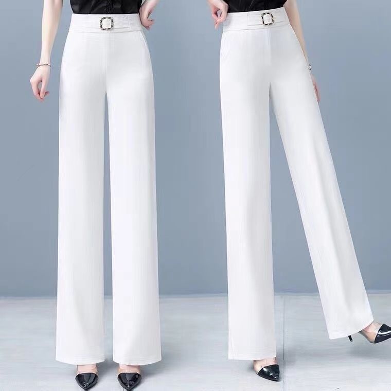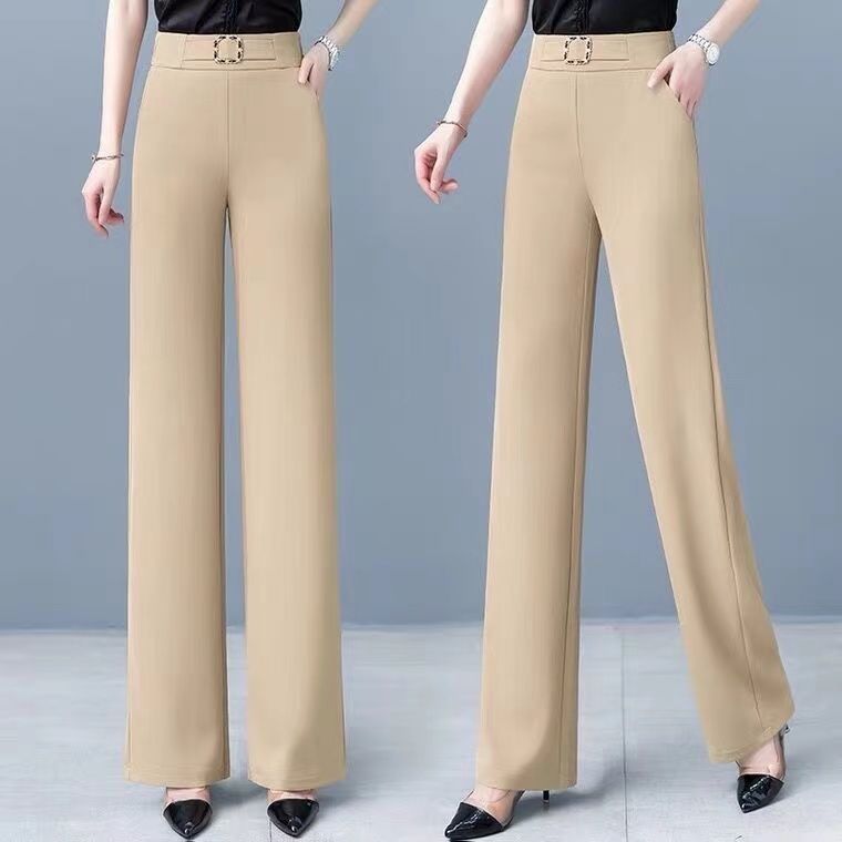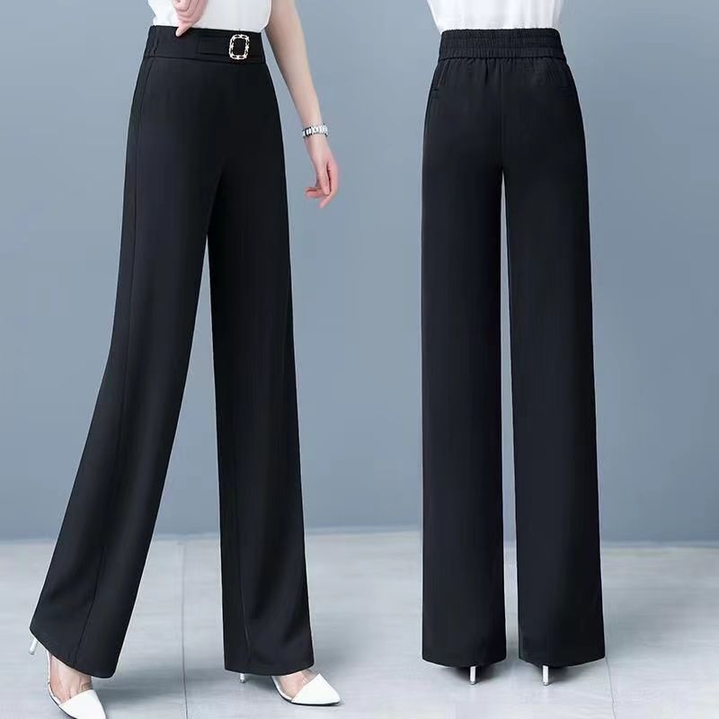 Главная страница > Эластичные брюки с широкими ногами женские весной и летом 2025 года с высокой талией тонкие свободные тонкие простые повседневные вертикальные брюки