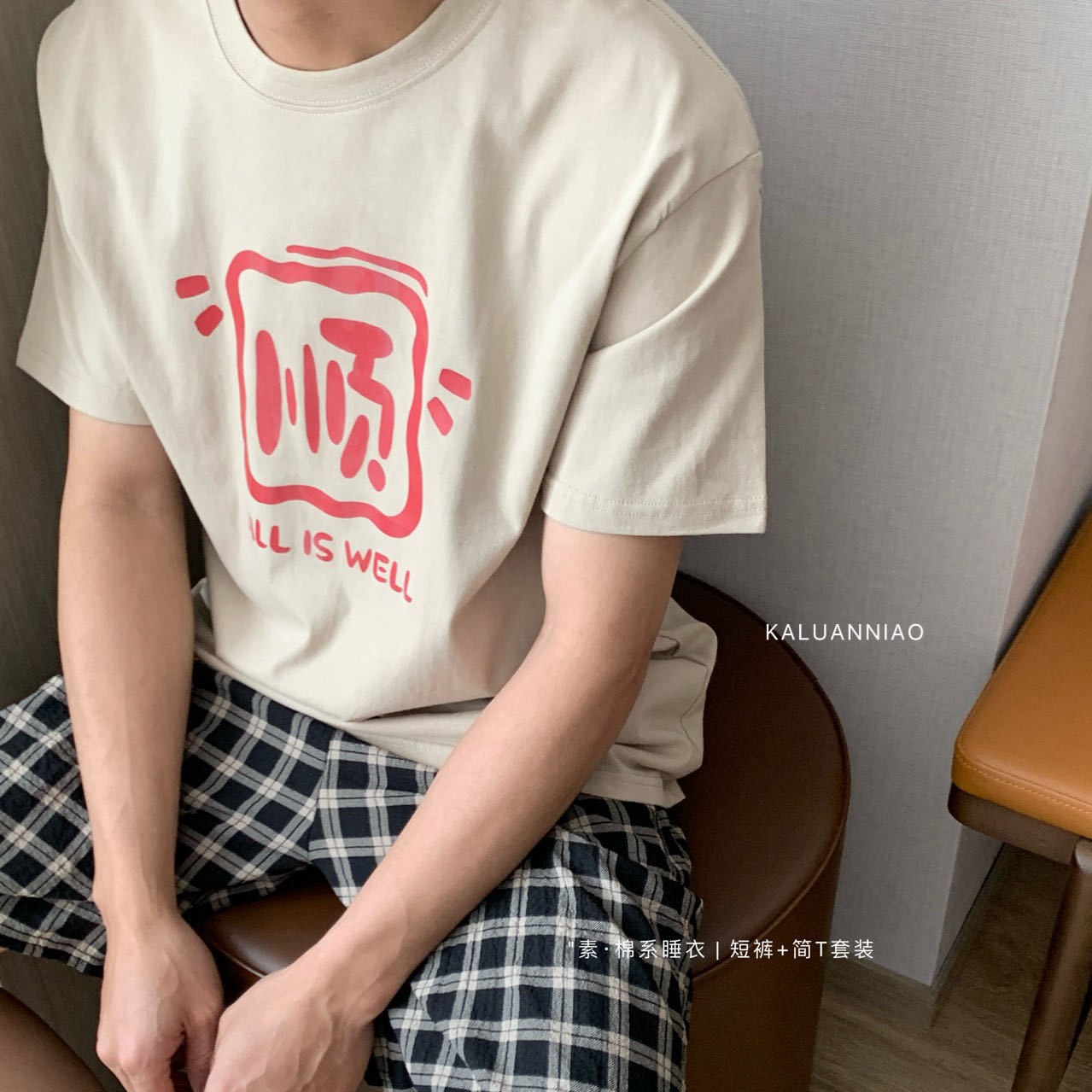 Главная страница > KALUANNIAO однотонные хлопковые пижамные шорты + простой комплект пижамы T, повседневная и удобная мужская домашняя одежда
