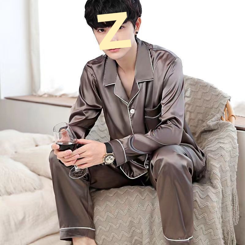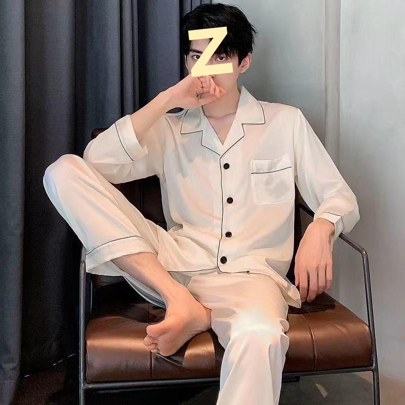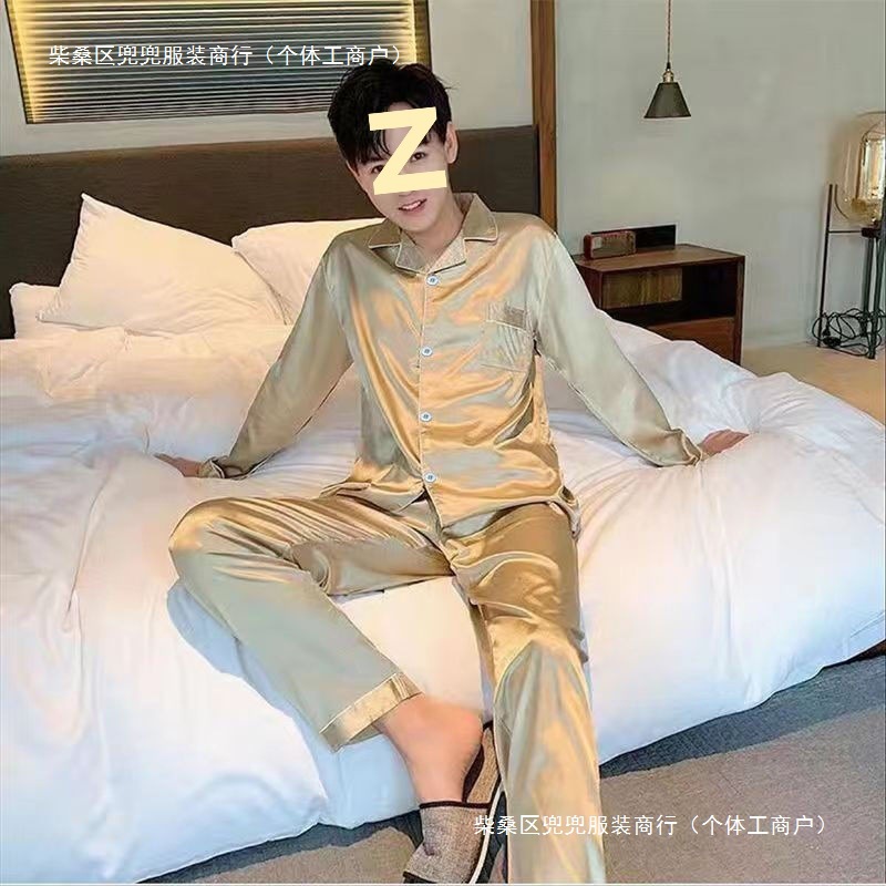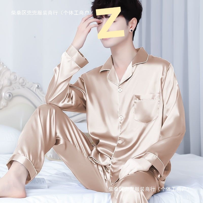Главная страница > Пижамы мужские весенние и осенние ледяные шелковые летние длинные рукава с высоким значением лица 2025 новый красивый студенческий костюм костюм летом