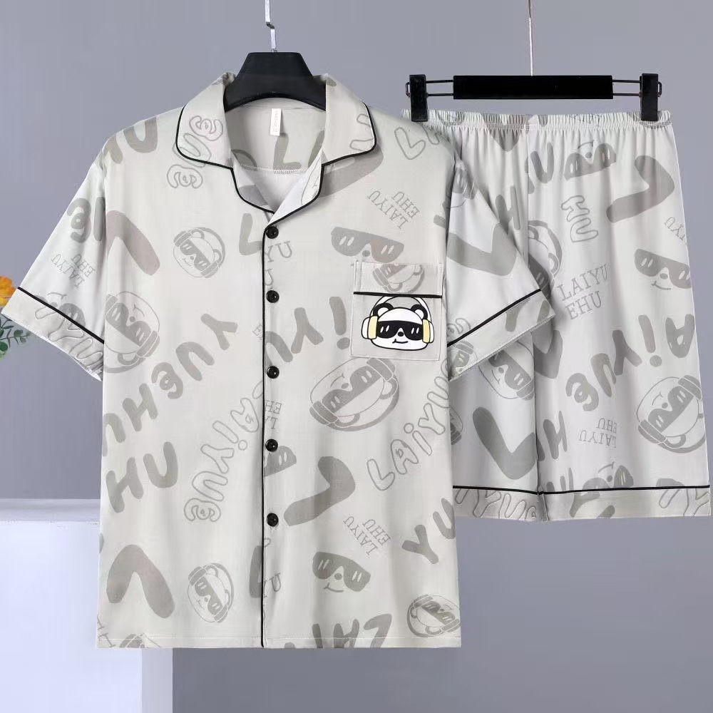 Пижамы мужские летние шорты с короткими рукавами плюс толстые подростки больших размеров тонкий кардиган свободный комплект домашней одежды для школьников младших классов